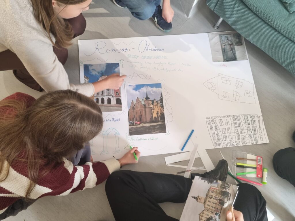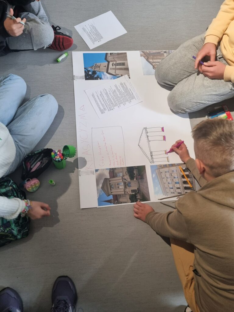 Spotkanie było nie tylko lekcją historii i sztuki, ale także doskonałą okazją do rozwijania kreatywności, wrażliwości estetycznej oraz współpracy w grupie. Uczniowie z dużym zaangażowaniem tworzyli swoje projekty, wykazując się pomysłowością i znajomością poznanych stylów.