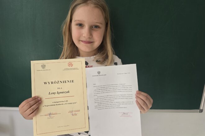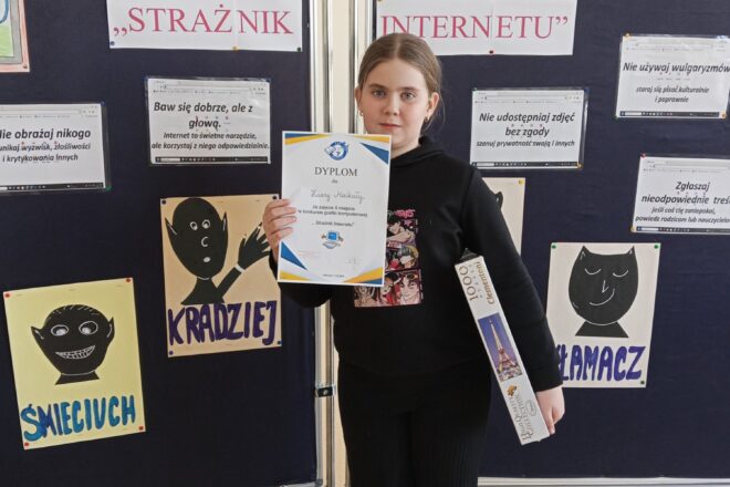 Z radością informujemy, że uczennica klasy 3A Hanna Maćkała zdobyła drugie miejsce w międzyszkolnym konkursie grafiki komputerowej pt. „Strażnik Internetu”. Celem konkursu było promowanie bezpiecznego i odpowiedzialnego korzystania z Internetu poprzez twórczość graficzną. Serdecznie gratulujemy sukcesu oraz życzymy dalszego rozwijania … Czytaj więcej