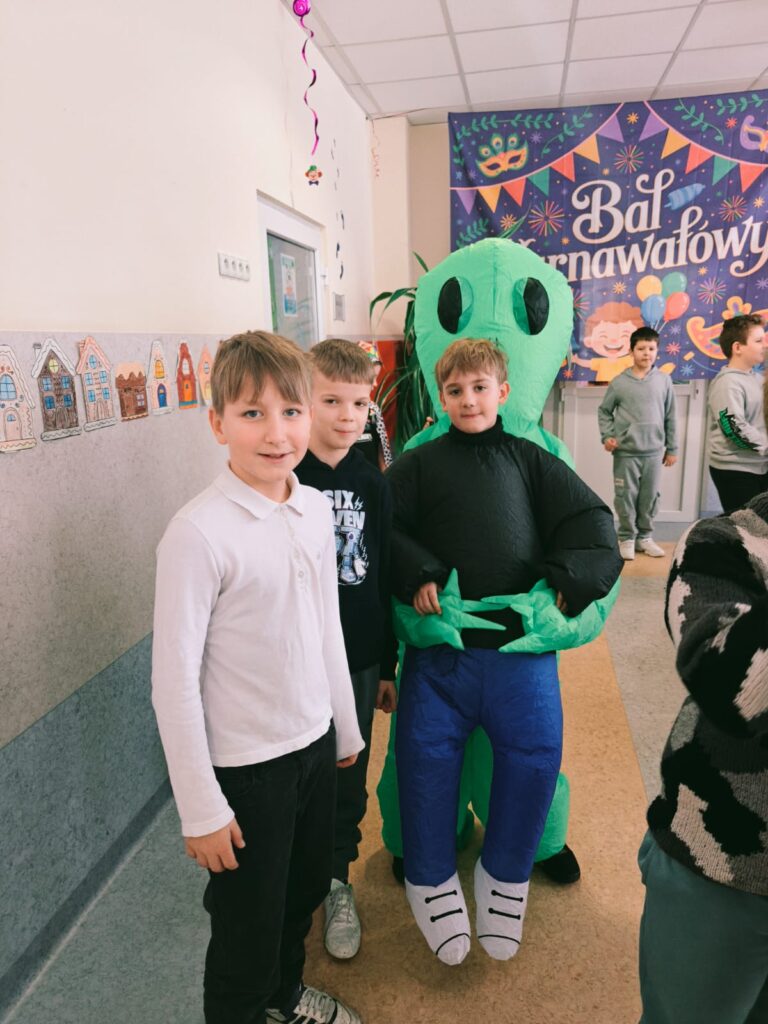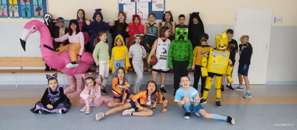 Dnia 16 lutego w naszej szkole odbył się długo wyczekiwany bal karnawałowy dla uczniów klas 0–3. Tego dnia hol zamieniła się w kolorową, pełną radości i muzyki salę balową. Już od samego rana można było podziwiać przepiękne i pomysłowe stroje przygotowane przez dzieci oraz ich rodziców.