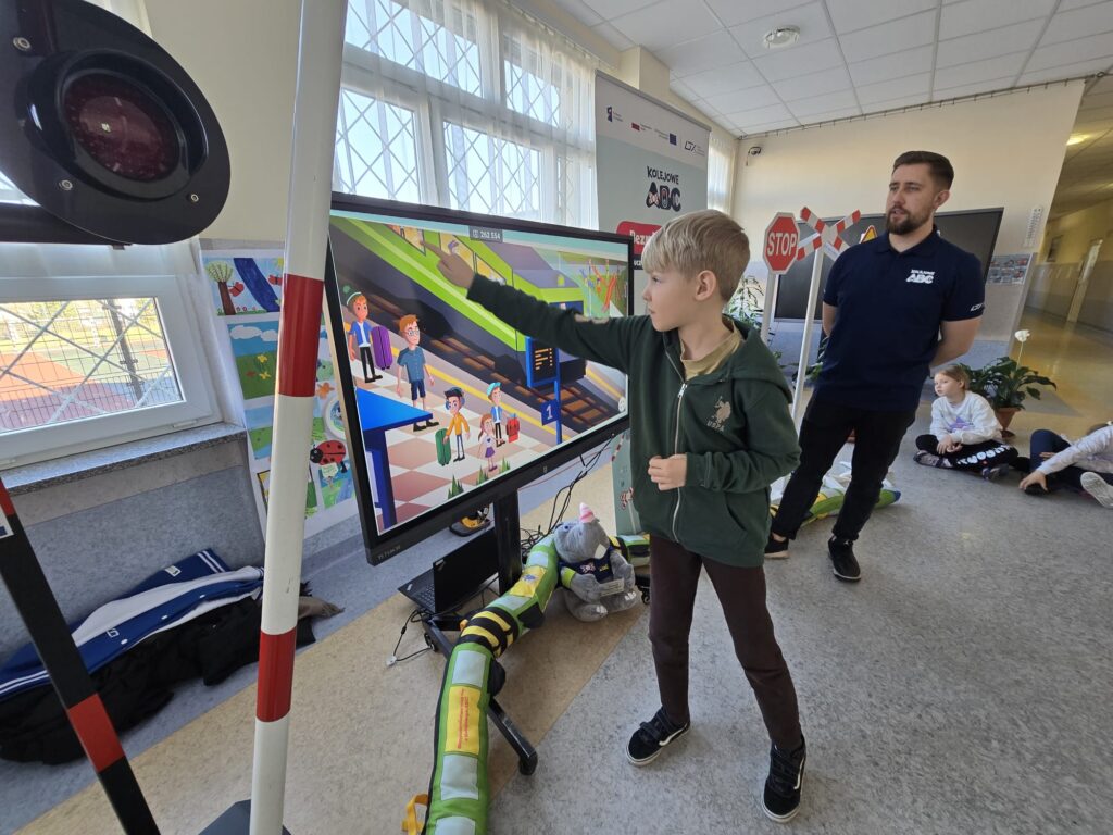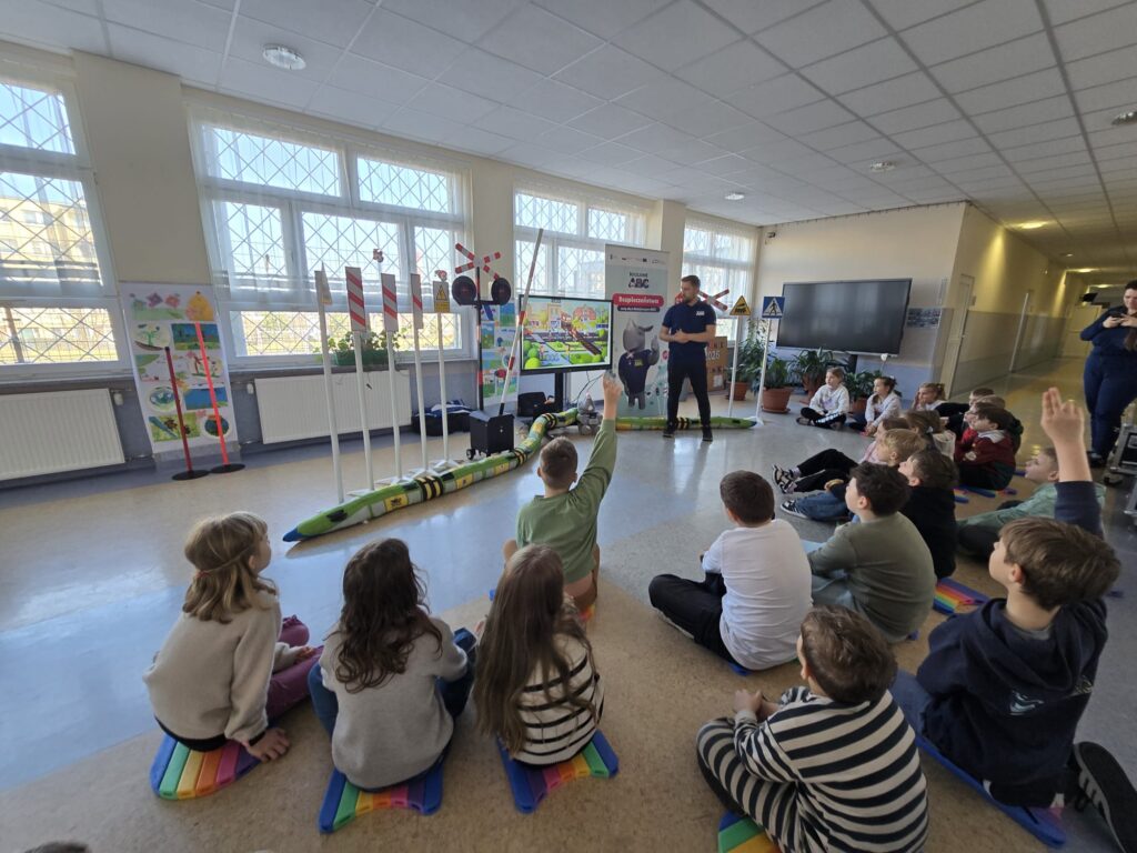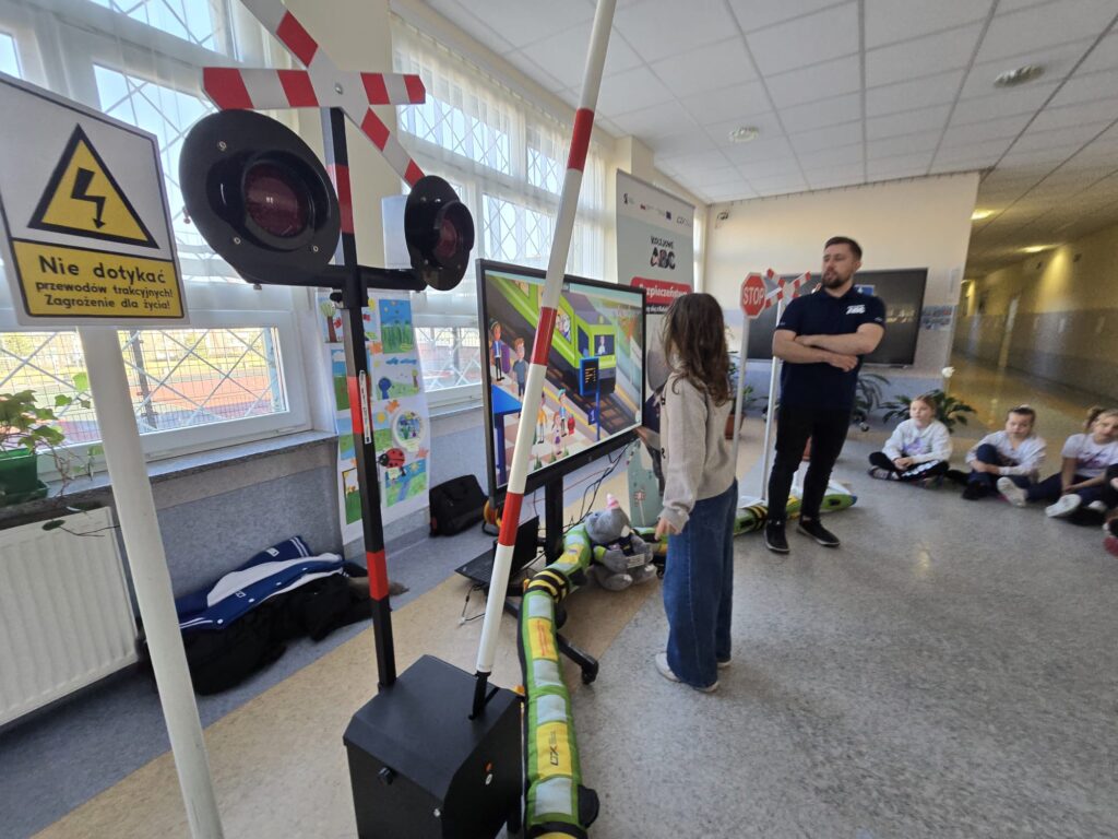 Podczas zajęć p. Mateusz Zbroja wyjaśnił, jak należy zachowywać się przed przejazdami kolejowymi – zarówno tymi ze szlabanami, jak i bez szlabanów. Dzięki przygotowanym zadaniom i ćwiczeniom dzieci mogły utrwalić zdobytą wiedzę oraz przekonać się, jak ważne jest przestrzeganie zasad bezpieczeństwa.