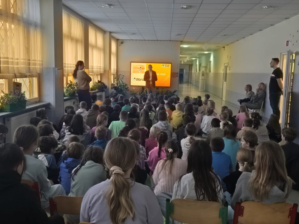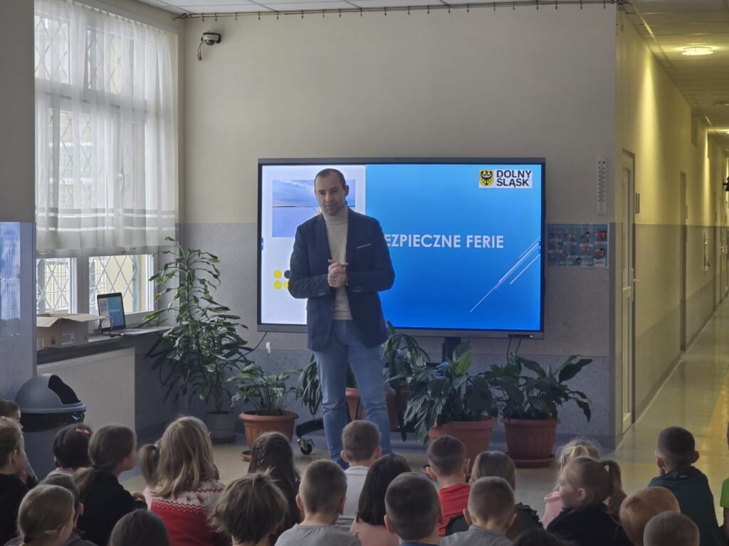 Podczas spotkania dla uczniów klas 0–3 z panem Danielem Szachniewic z Dolnośląskiego Ośrodka Ruchu Drogowego (DORD) w Wałbrzychu, dzieci przypomniały sobie najważniejsze zasady bezpiecznego spędzania ferii zimowych o których należy pamiętać i ich przestrzegać. Rozmawialiśmy m.in. o bezpiecznych zabawach na śniegu i lodzie, właściwym zachowaniu na drodze, noszeniu elementów odblaskowych oraz o tym, jak reagować w sytuacjach zagrożenia. Spotkanie miało na celu zwiększenie świadomości najmłodszych i przygotowanie ich do zimowego wypoczynku w sposób odpowiedzialny i bezpieczny. Na zakończenie spotkania pan Daniel rozdał wszystkim uczestnikom opaski odblaskowe, które będą dodatkowym elementem zwiększającym bezpieczeństwo naszych uczniów na drodze. Z okazji ferii zimowych życzymy wszystkim radosnego i bezpiecznego wypoczynku, pełnego uśmiechu i zabawy, a przede wszystkim szczęśliwego powrotu do szkoły.