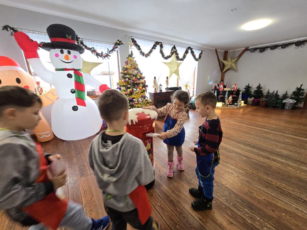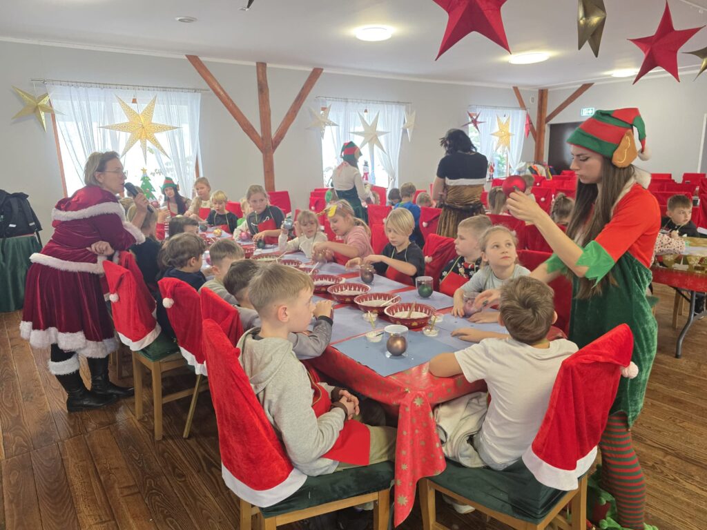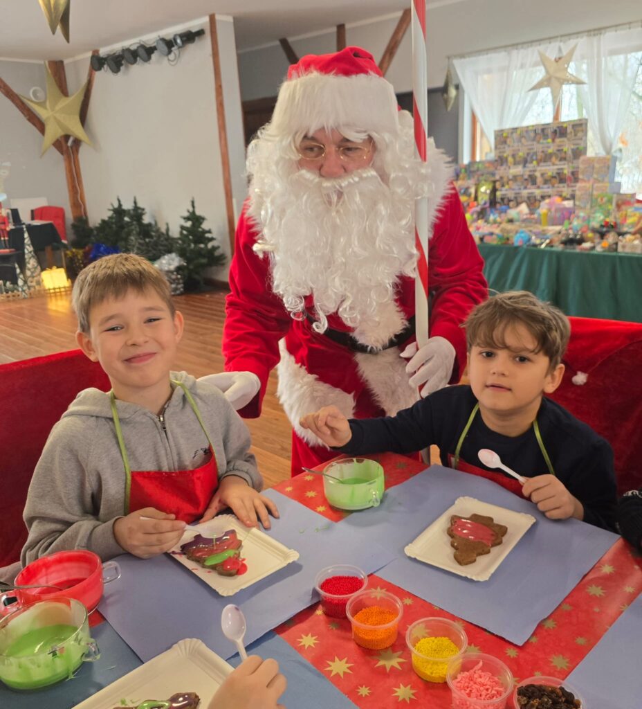 Do Jaworzyny Śląskiej zawitał Święty Mikołaj, a wraz z nim prawdziwa świąteczna magia! Dzieci z klasy 0, 1a, 2b pisały listy pełne marzeń, które Mikołaj czytał z serdecznym uśmiechem. W świątecznej pracowni trwały twórcze czary – pierniczki mieniły się kolorowym lukrem, bombki błyszczały brokatem, a figurki nabierały życia dzięki farbkom i złotym detalom. Mikołaj i jego Elfy zaprosili wszystkich do tańców i zabaw, które wypełniły salę śmiechem i radością. Na zakończenie dzieci mogły napić się gorącej herbatki i zrobić drobne zakupy. To był niezwykły, pełen cudów dzień!