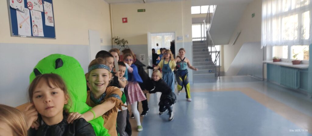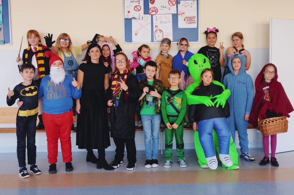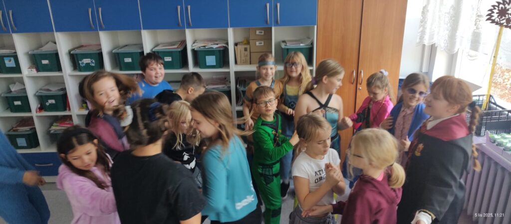 Dzisiaj, 5 listopada, w naszej klasie 3a obchodziliśmy Dzień Postaci z Bajek. To był wyjątkowy i pełen radości dzień! Sprawdziliśmy swoją wiedzę w quizie o bajkach, przypominając sobie ulubione historie i bohaterów z dzieciństwa. Nie zabrakło też muzyki i wspólnej zabawy. Chętni uczniowie przebrali się za swoich ulubionych bajkowych bohaterów – w klasie pojawiły się księżniczki, superbohaterowie, wróżki i wiele innych barwnych postaci. To był wspaniały dzień pełen uśmiechu i dobrej zabawy!