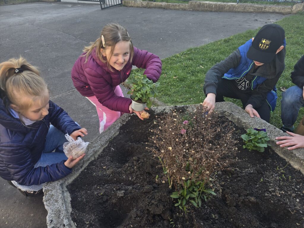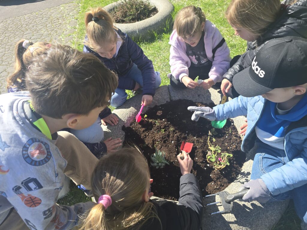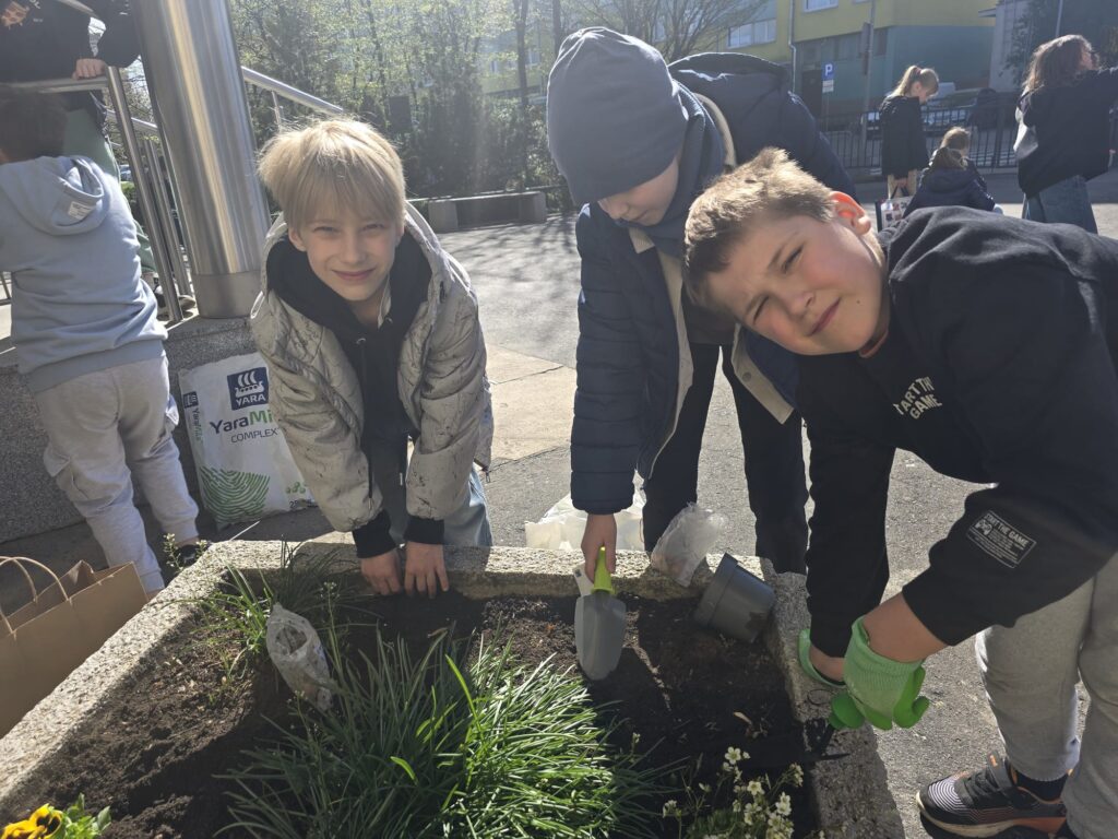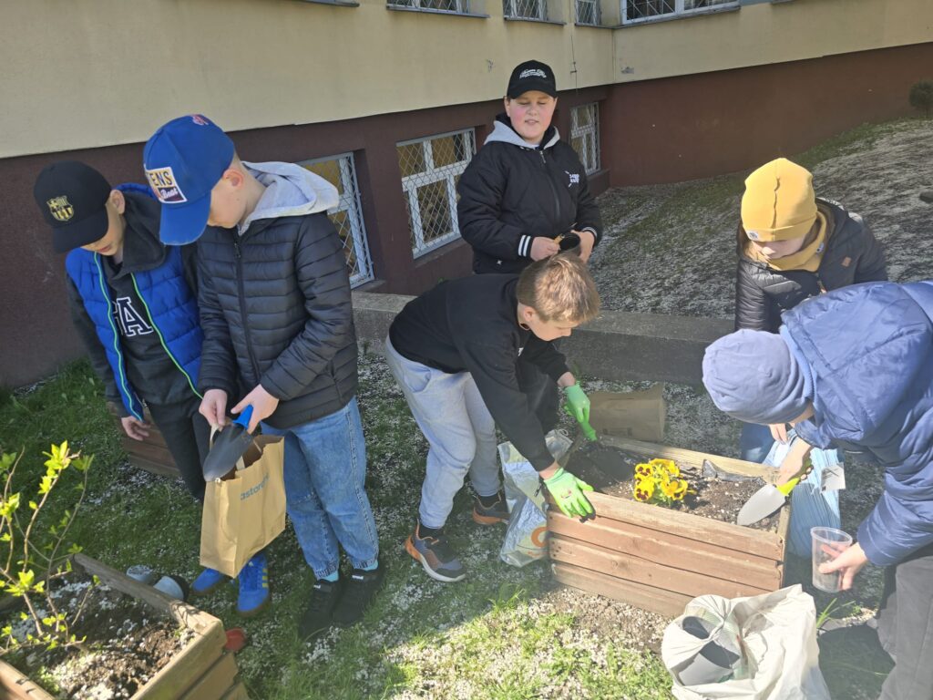 Z okazji Dnia Ziemi zorganizowaliśmy wyjątkowe zajęcia, podczas których uczniowie aktywnie włączyli się w upiększanie terenu szkoły – sadzili kwiaty, cebulki oraz wysiewali nasiona. Była to nie tylko nauka poprzez działanie, ale także symboliczne uczczenie „urodzin” naszej planety i wyraz troski o jej przyszłość.