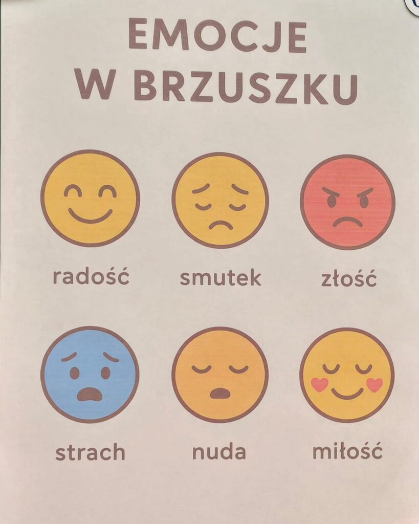 Dyskutowaliśmy także o tym, co dzieje się w naszym brzuszku, kiedy jesteśmy głodni lub najedzeni. Na zakończenie spotkania powstała kolorowa mapa myśli, przedstawiająca emocje i sposoby radzenia sobie z nimi. Nie zabrakło też zdrowego akcentu – degustacji gorzkiej czekolady i orzechów nerkowca.