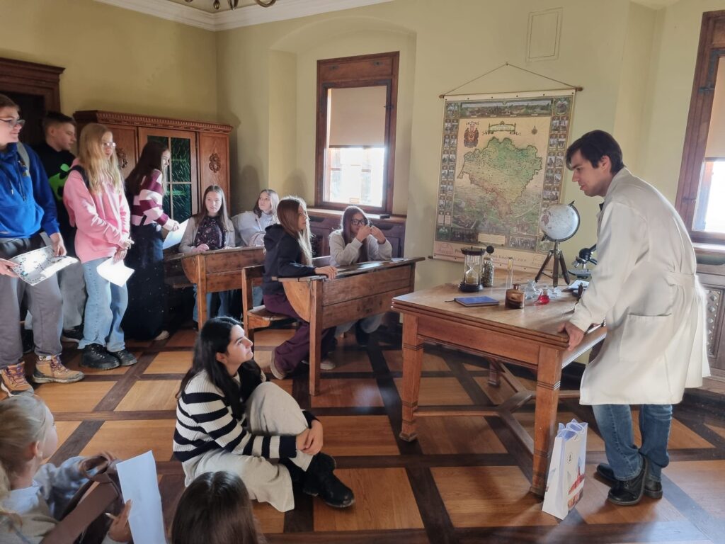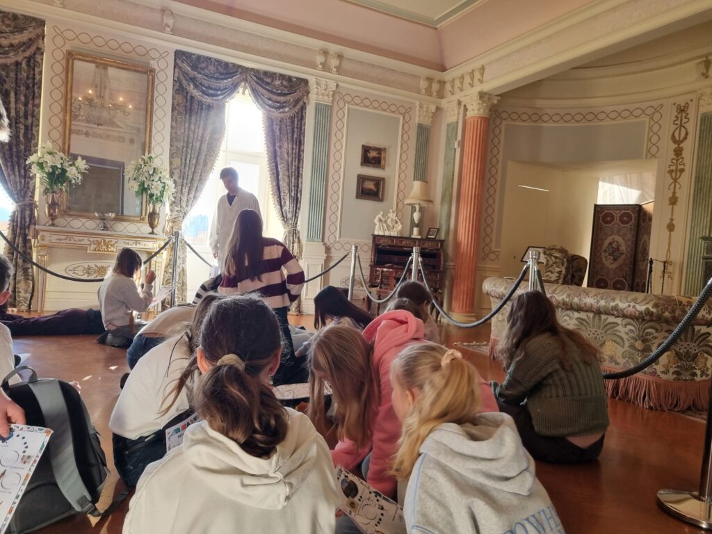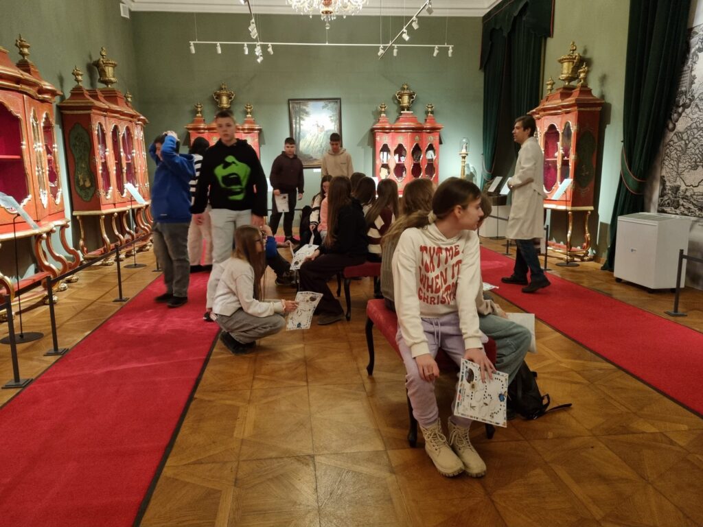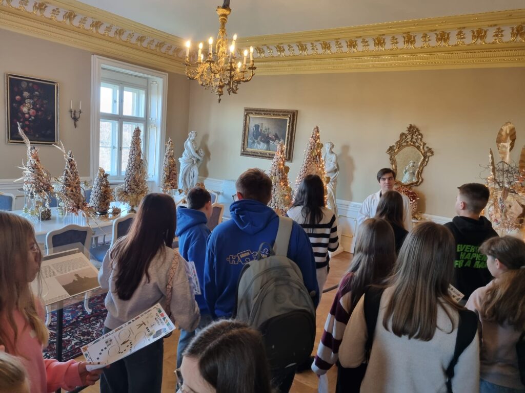Ostatnim punktem wycieczki był Zamek Książ – jeden z największych i najpiękniejszych zamków w Polsce. Podczas zwiedzania uczniowie poznali fascynującą historię zamku oraz losy jego dawnych mieszkańców. Szczególne zainteresowanie wzbudziła postać księżnej Daisy, jej niezwykłe życie, działalność społeczną oraz związki z Zamkiem Książ. Uczniowie dowiedzieli się również, jak wyglądało codzienne życie arystokracji oraz jak na przestrzeni lat zmieniały się dzieje tej imponującej rezydencji.