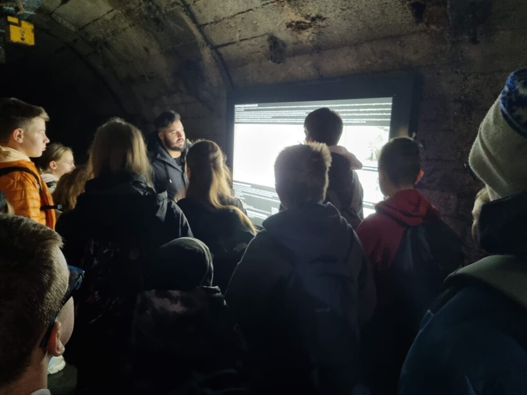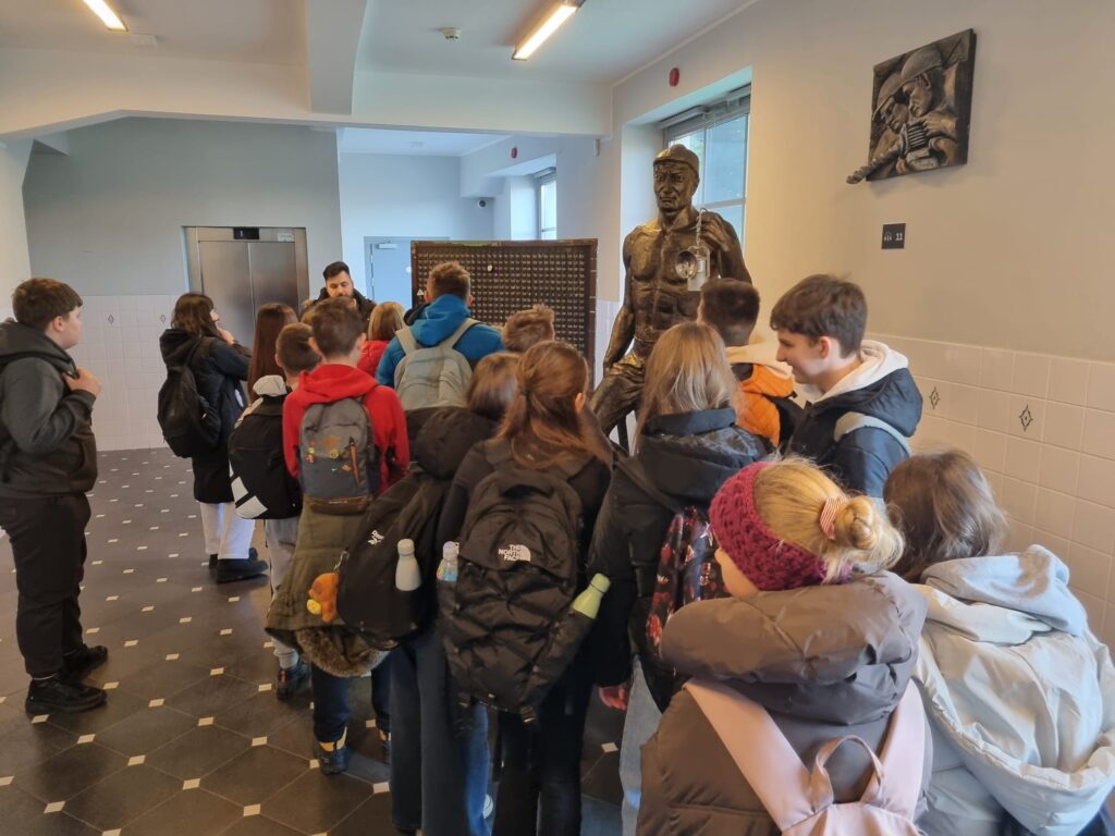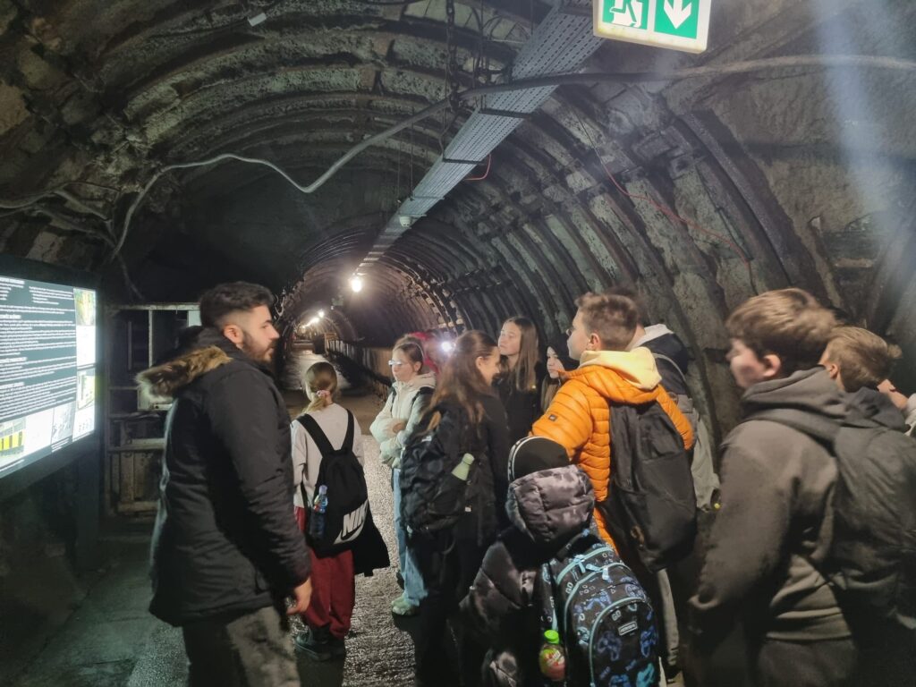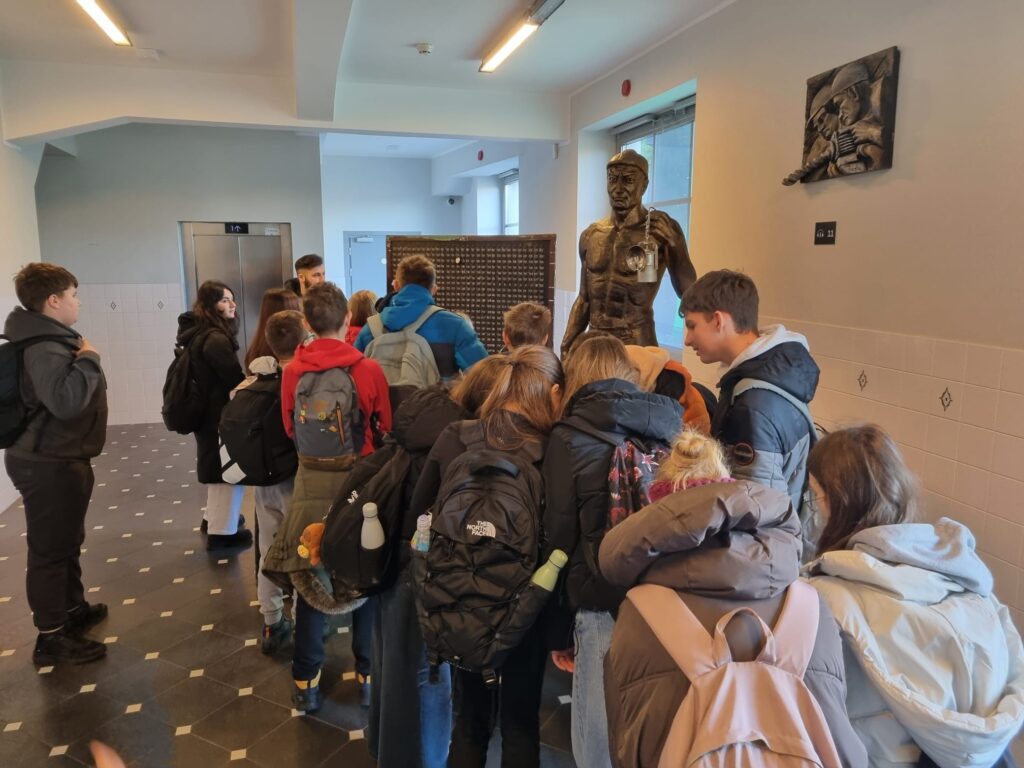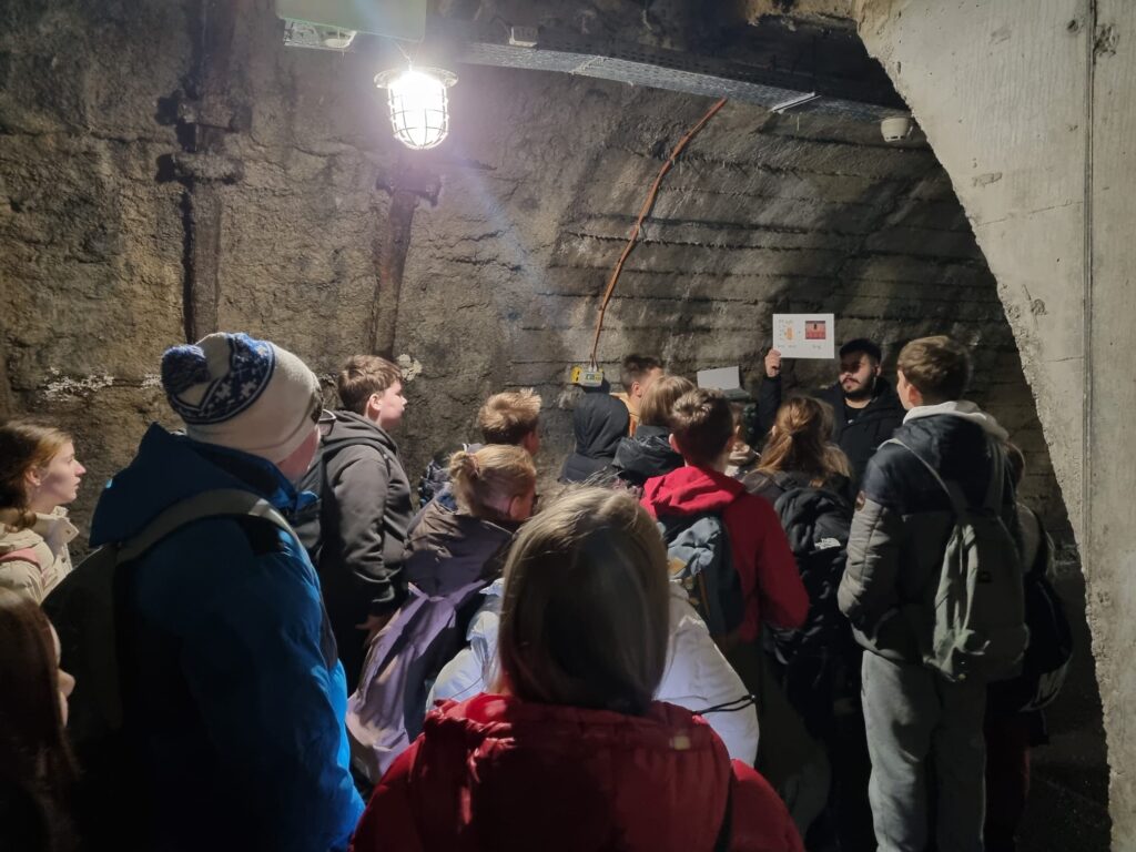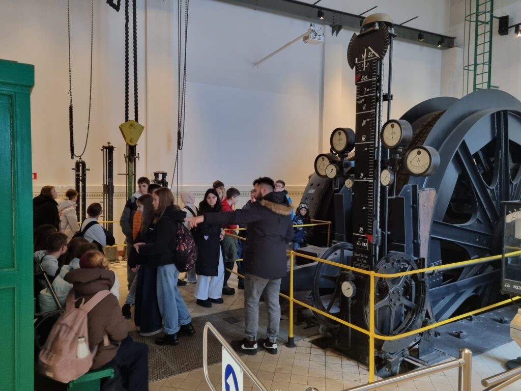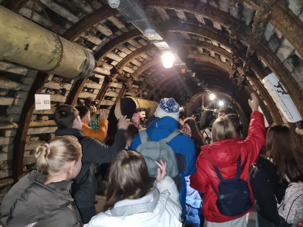 Pierwszym punktem była Stara Kopalnia Centrum Nauki i Sztuki w Wałbrzychu. Uczniowie poznali tam historię wałbrzyskiego górnictwa, znaczenie przemysłu węglowego dla rozwoju miasta oraz tradycje górnicze, które przez wiele lat kształtowały tożsamość regionu. Dużym przeżyciem było zejście pod ziemię, podczas którego uczniowie mogli zobaczyć, w jakich warunkach pracowali górnicy oraz jak wyglądała ich codzienna praca.