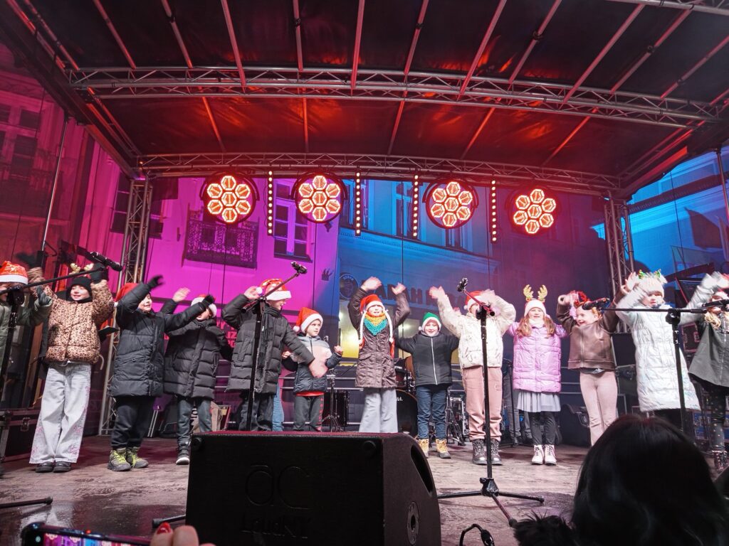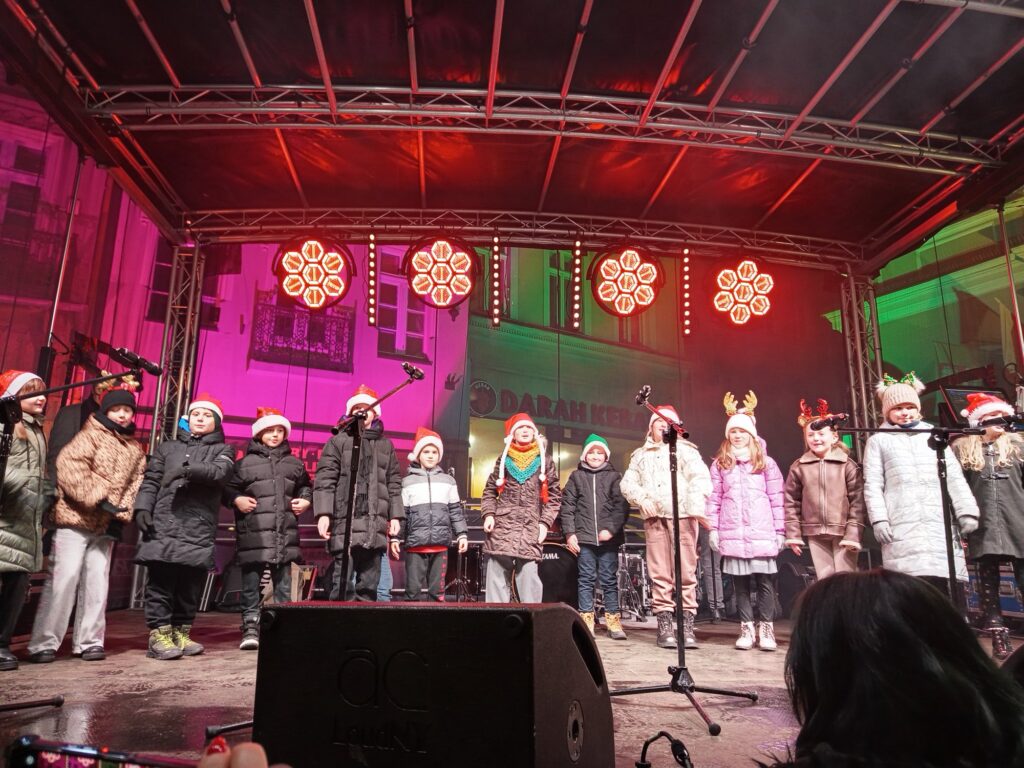 Uczniowie klas drugich mieli przyjemność zaprezentować swoje umiejętności podczas Jarmarku Bożonarodzeniowego na wałbrzyskim Rynku. W cudownej scenerii migoczących światełek i pięknej iluminacji, nasi uczniowie zaśpiewali piosenki o tematyce świątecznej. Było dużo dobrych emocji i miłych rozmów po zakończonym występie. Na zakończenie spotkania, wspólnie z Rodzicami, stanęliśmy do wspólnego zdjęcia pod piękną choinką.
