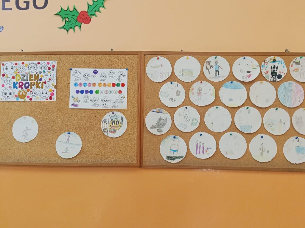 W ramach obchodów każda klasa przygotowała swoje prace plastyczne inspirowane motywem kropki. Powstały barwne kompozycje, rysunki i kreatywne projekty, które następnie zaprezentowano w klasowych galeriach.
