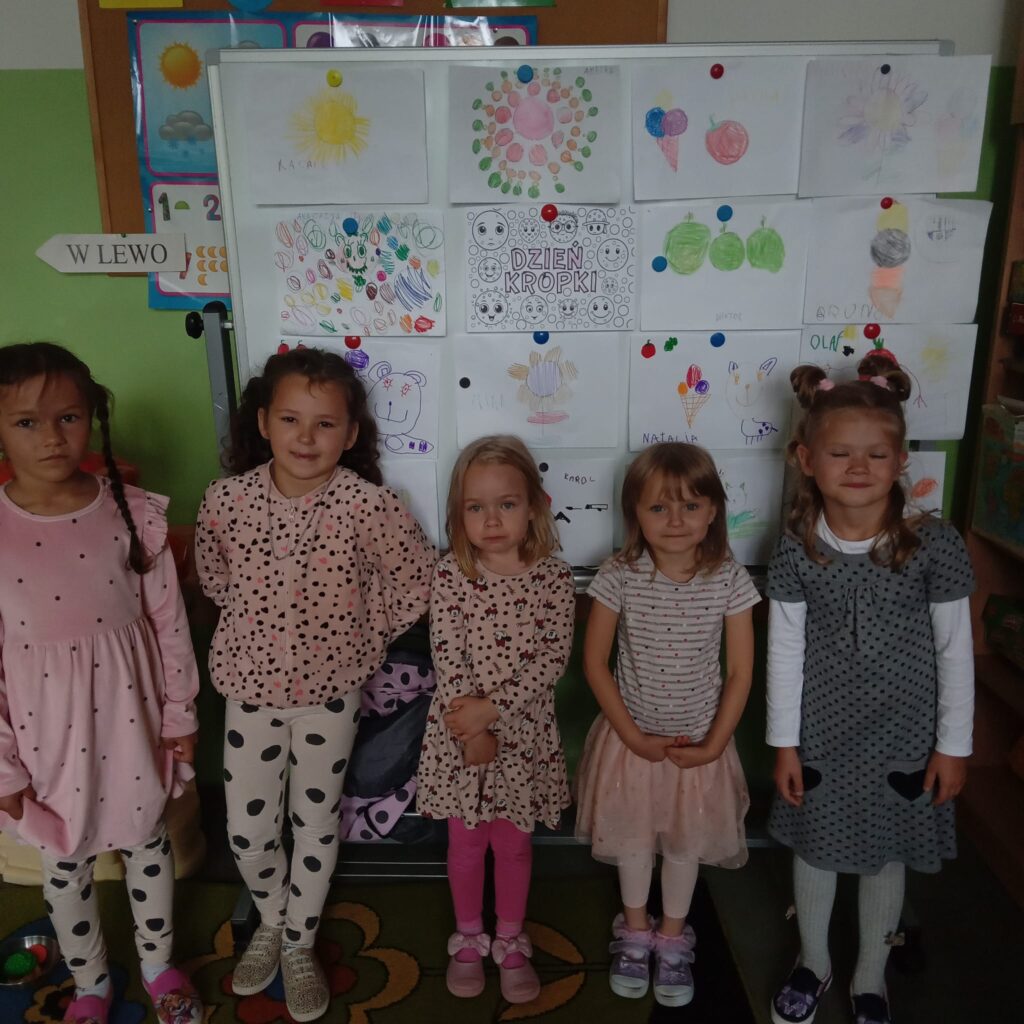 Nie zabrakło również wyjątkowego wydarzenia – odbył się prawdziwy Kropkowy Pokaz Mody! Tego dnia każdy uczeń miał na sobie ubrania ozdobione kropkami, dzięki czemu szkolne korytarze wypełniły się kolorami, pomysłowością i radością.