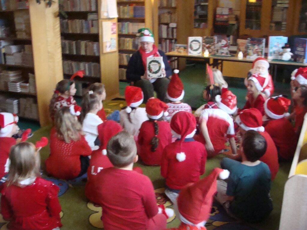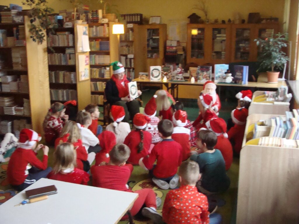 To już tradycja. Rokrocznie, w grudniowe poranki, uczniowie klas młodszych spotykają się wśród książek i słuchają świątecznych opowieści. Nastrój, jak i same bajki czytane przez panią bibliotekarkę są ciepłe, rodzinne, często magiczne. Towarzyszy im melodia świąteczna i dźwięk dzwoneczków. Zwykle każdy chce się podzielić też opowieścią o własnych doświadczeniach i kultywowanych rodzinnych tradycjach świątecznych.