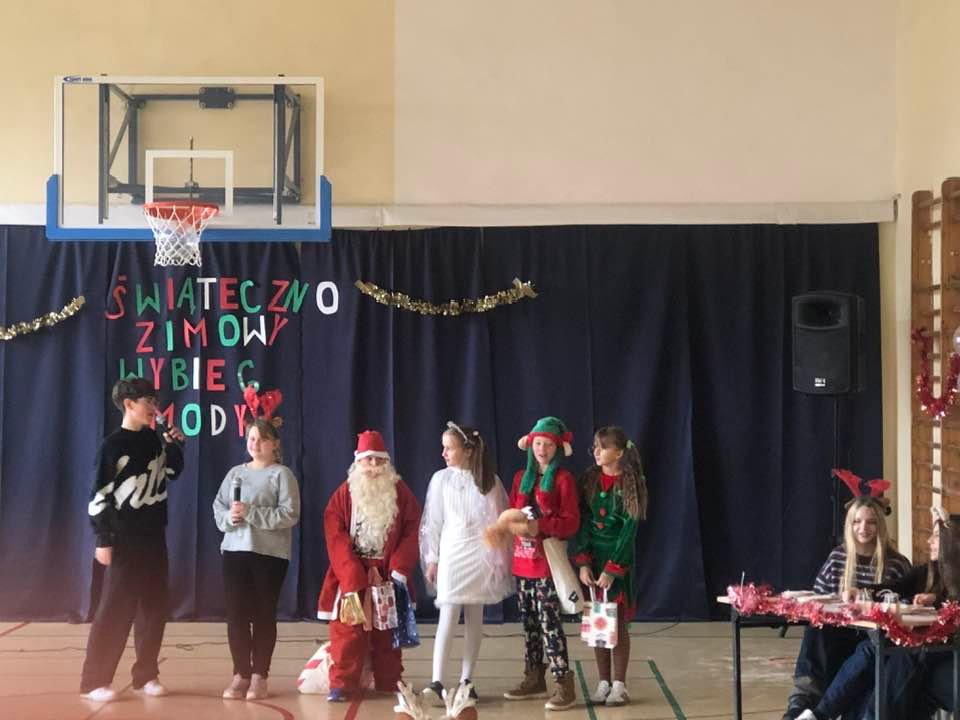 8 grudnia w naszej szkole odbył się Świąteczno-zimowy pokaz mody, przygotowany przez uczniów klasy 7B. W wydarzeniu uczestniczyły wszystkie klasy, które zaprezentowały stroje nawiązujące do tematyki zimowej i świątecznej.