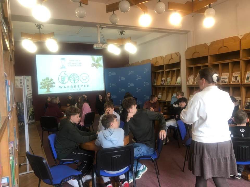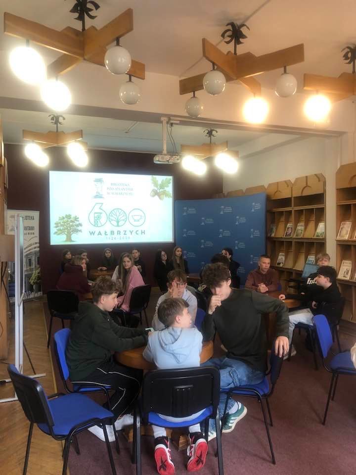 Uczniowie klasy 7b wzięli udział w zajęciach edukacyjnych zorganizowanych w Dziale Regionalnym Biblioteki pod Atlantami w Rynku. Spotkanie odbyło się z okazji obchodów 600-lecia Wałbrzycha i dotyczyło tematu „Wielokulturowy Wałbrzych – mieszkańcy miasta po 1945 r.”.