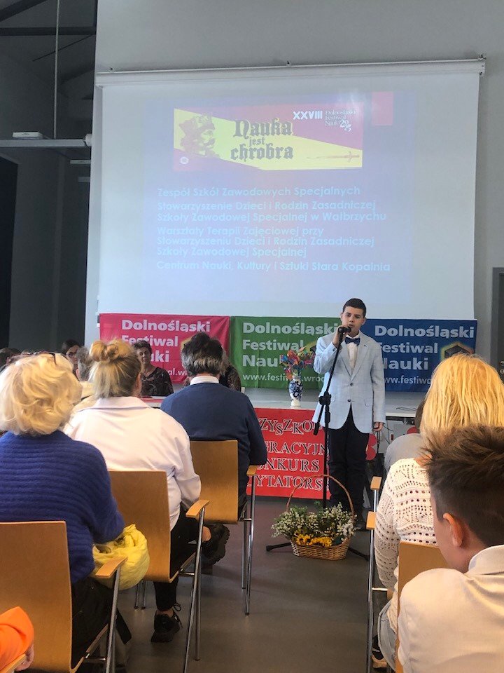 Uczniowie Publicznej Szkoły Podstawowej nr 15 wzięli udział w XXIII Międzyszkolnym Integracyjnym Konkursie Recytatorskim, organizowanym w ramach Dolnośląskiego Festiwalu Nauki 2025, który odbył się 29 października 2025 roku w wyjątkowej scenerii Starej Kopalni.