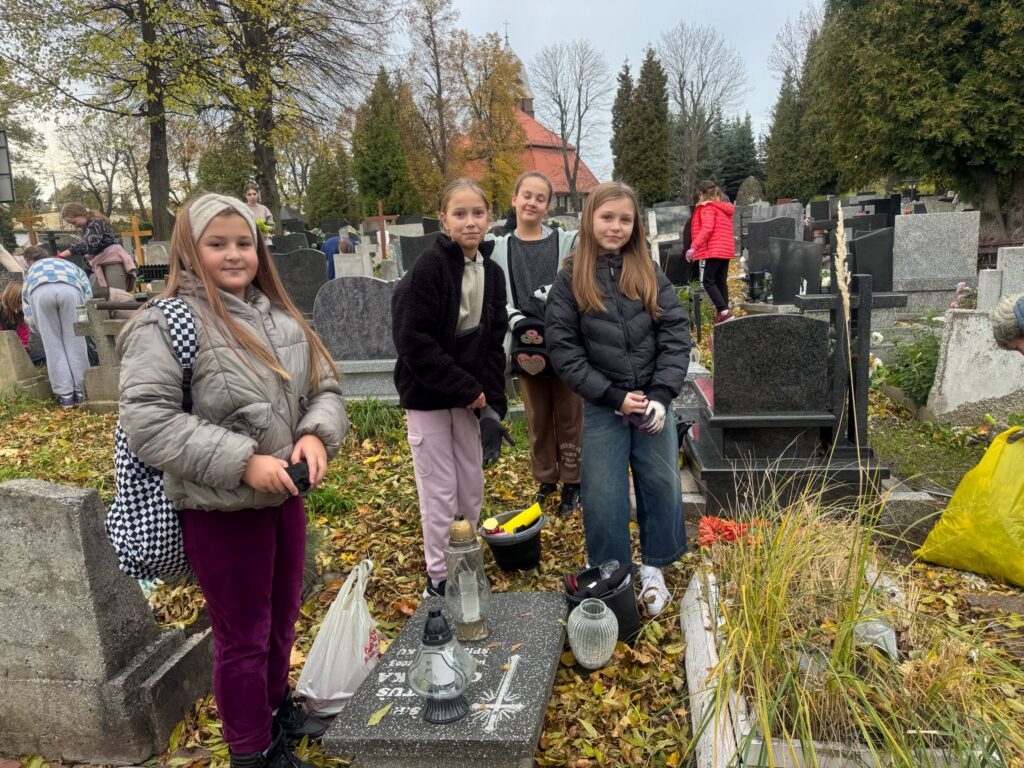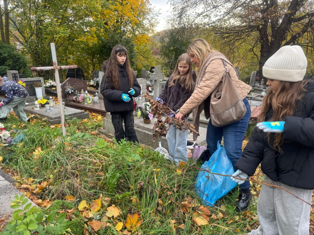 Dzieci porządkowały mogiły, usuwały liście i zanieczyszczenia, a na zakończenie zapaliły znicze, oddając hołd zmarłym, o których często już nikt nie pamięta.