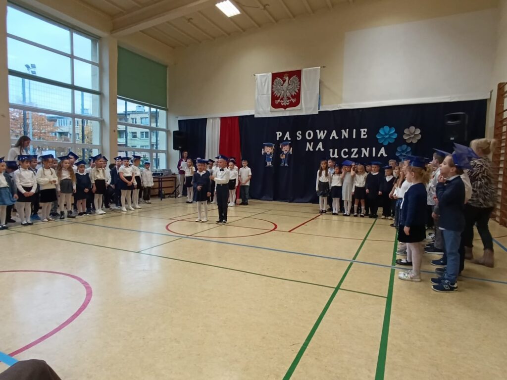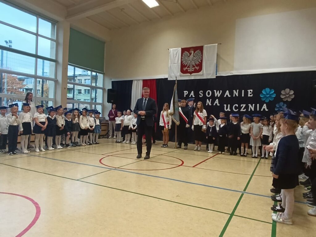 Tradycją naszej szkoły jest, że najmłodsi uczniowie w październiku przeżywają swoją pierwszą ważną uroczystość jaką jest pasowanie na ucznia pierwszej klasy. Na sali gimnastycznej pierwszoklasiści odświętnie ubrani i przejęci, w obecności swoich najbliższych oraz zaproszonych gości rozpoczęli występ, w którym zaprezentowali swoje umiejętności recytatorskie, taneczne i wokalne. Po zakończeniu części artystycznej, w niezwykle podniosłej atmosferze, uczniowie ślubowali być dobrymi Polakami, godnie reprezentować swoją szkołę, swym zachowaniem i nauką sprawiać radość rodzicom i nauczycielom. Po złożeniu ślubowania Pan Dyrektor Paweł Łuczyński dokonał symbolicznego pasowania na ucznia. Magicznym ołówkiem, jak czarodziejską różdżką dotykał ramion swoich podopiecznych. Na zakończenie uczniowie wraz z rodzicami udali się do swoich klas, by odebrać swoją pierwszą legitymację oraz drobny upominek. Wszystkim pierwszakom życzymy, aby ten dzień pozostał w ich pamięci jako wielkie przeżycie i niezapomniana, radosna chwila.