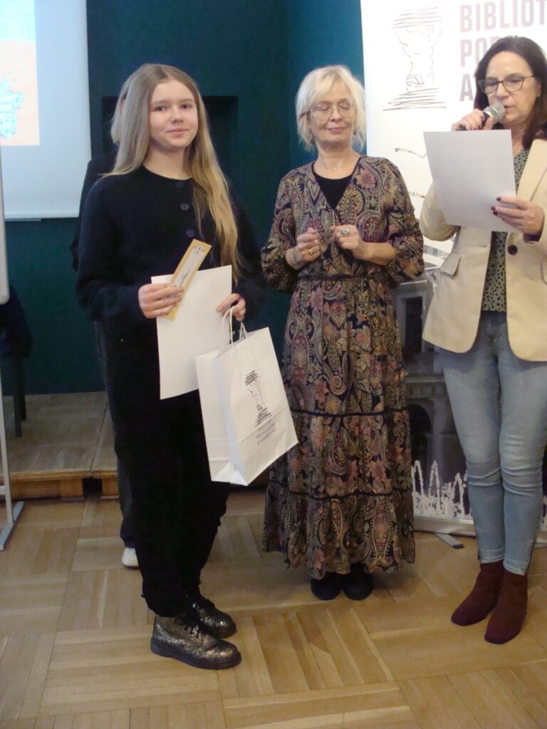 Ten był przeznaczony dla klas IV i VIII. Zadaniem uczestników było napisanie alternatywnej wersji zakończenia do dwóch tekstów pochodzących z książek B. Ostrowickiej. Laureatkami konkursu są uczennice „Piętnastki” Wiktoria Sabała klasa kl. IV c, Cecylia Charzewska – Woś klasa kl. VIII a.
