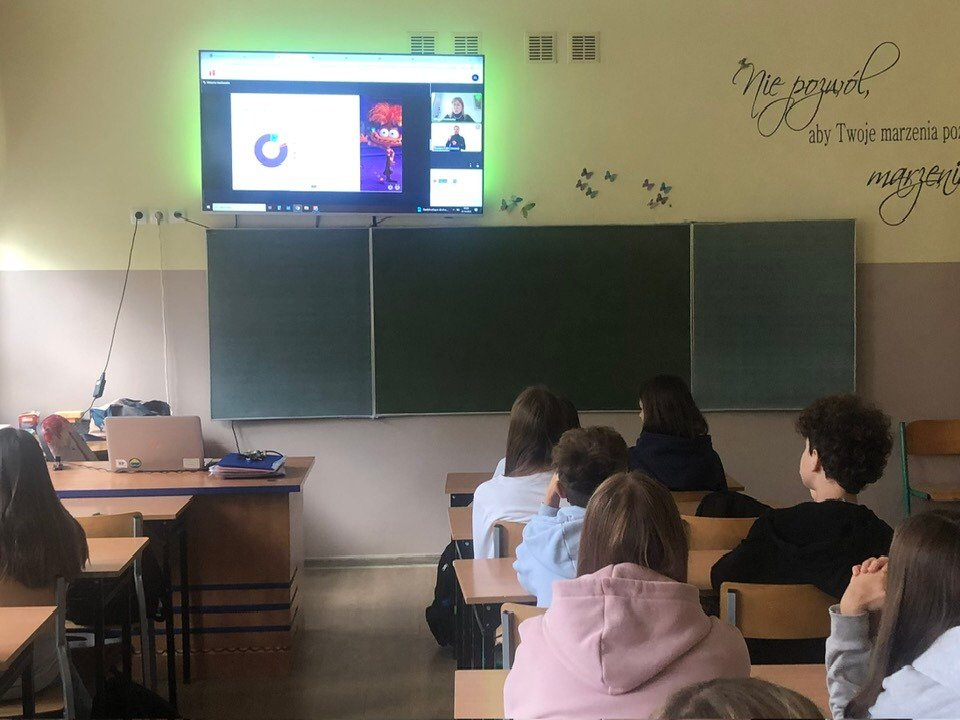 27 października klasa 7b wzięła udział w lekcji online w ramach kampanii „Dzieciństwo bez Przemocy”. Zajęcia prowadziła Wiktoria Kozłowska z Fundacji Dajemy Dzieciom Siłę, psychoterapeutka z poradni „Dziecko w Sieci”.