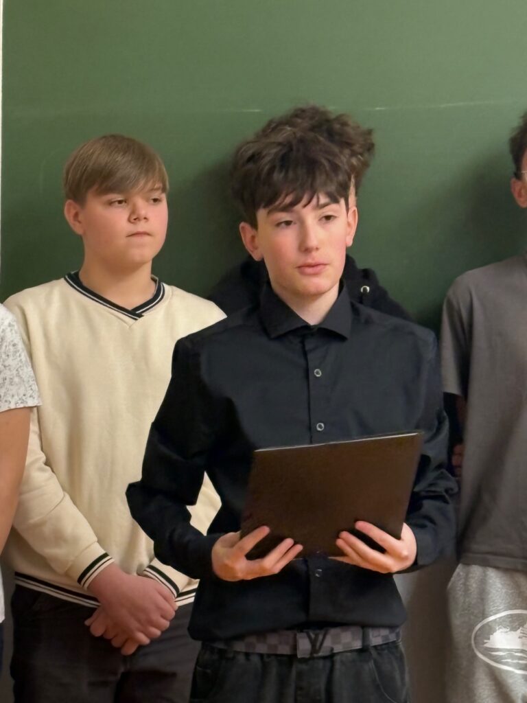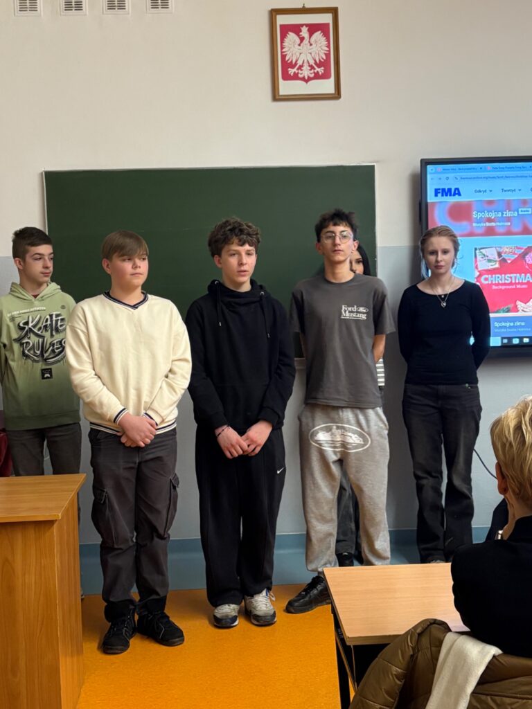 26 stycznia odbyło się uroczyste spotkanie dla rodziców klasy 7a. Wychowawca podsumował I semestr nauki, omawiając postępy oraz osiągnięcia uczniów. Następnie młodzież zaprezentowała przygotowany występ o tematyce zimowej – recytowano wiersze, a Maja i Eliana zaśpiewały piosenkę. Spotkanie przebiegło w miłej i serdecznej atmosferze.
