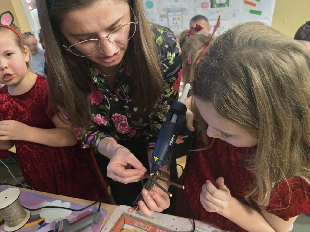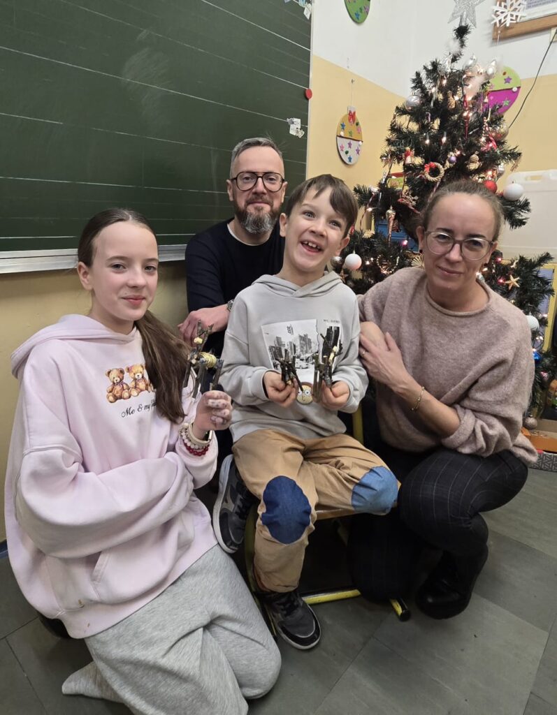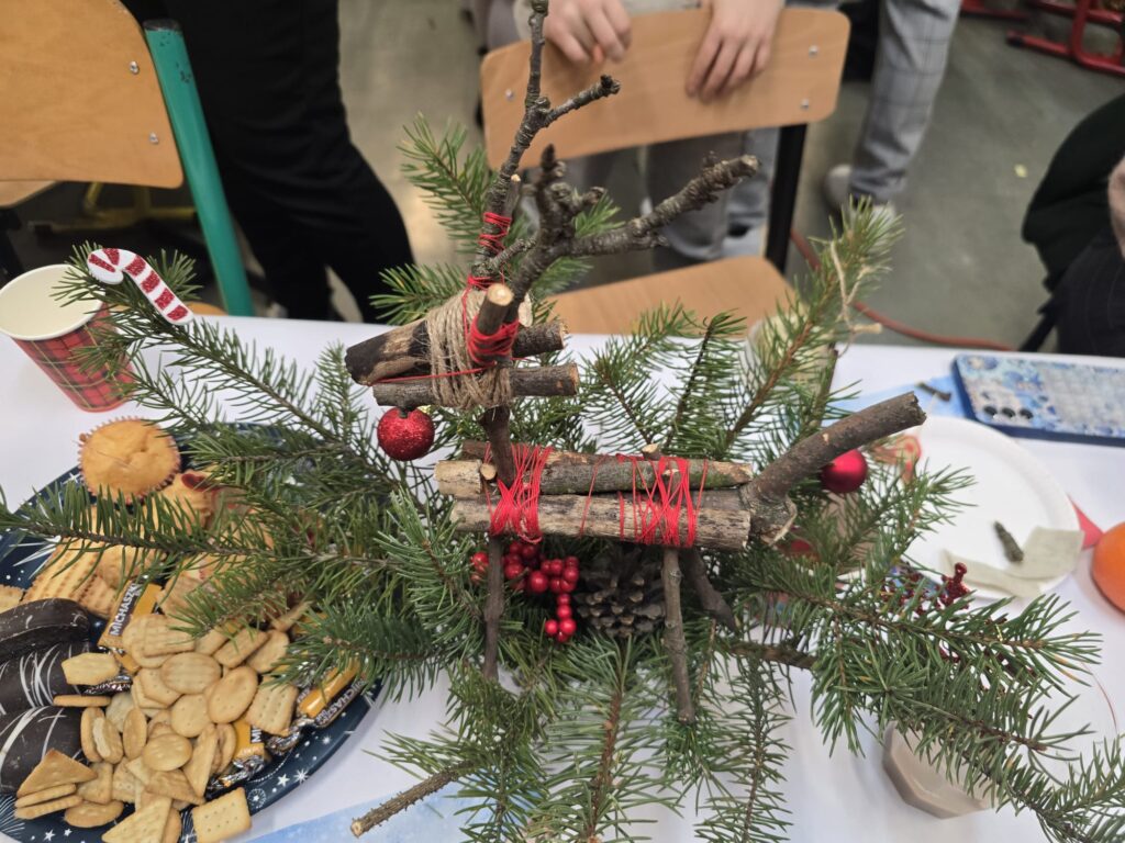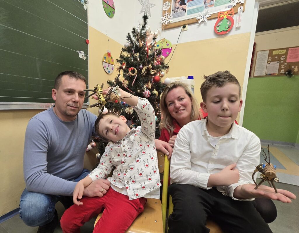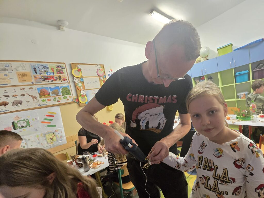 Klasa 2b przeżyła wyjątkową wigilię klasową, przygotowaną z ogromnym zaangażowaniem przez rodziców. W spotkaniu uczestniczyli również zaproszeni goście: Dyrekcja szkoły p. Paweł Łuczyński i p. Angelika Niedziela oraz bajkopisarka p. Raszka. Dzieci zaprezentowały piękne kolędy i pastorałki, wprowadzając wszystkich w świąteczny nastrój. Wspólnie złożyliśmy sobie serdeczne życzenia, a Pan Dyrektor przekazał życzenia w imieniu Dyrekcji szkoły. Pani Raszka dołączyła sie do zyczeń. Podczas spotkania odbyły się także warsztaty, na których dzieci wraz z rodzicami wykonały jelonki z gałązek i korka. Własnoręcznie przygotowane prace dzieci zabrały do domu jako pamiątkę tego wyjątkowego, wigilijnego spotkania.