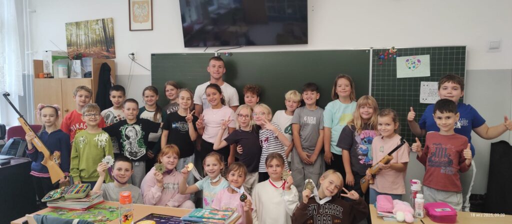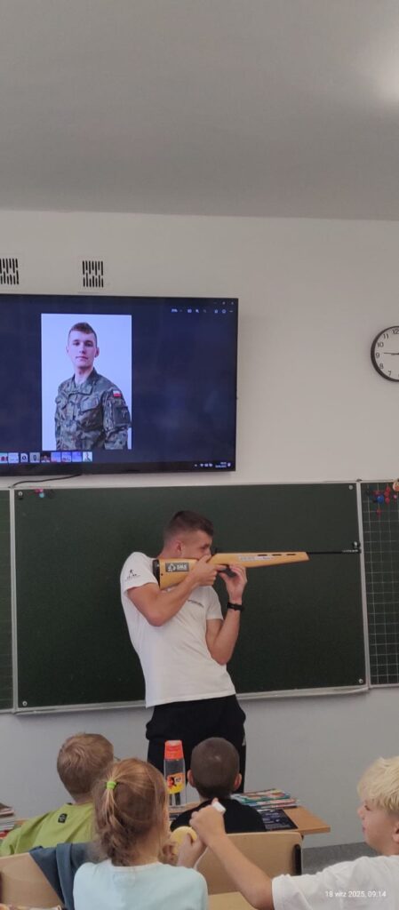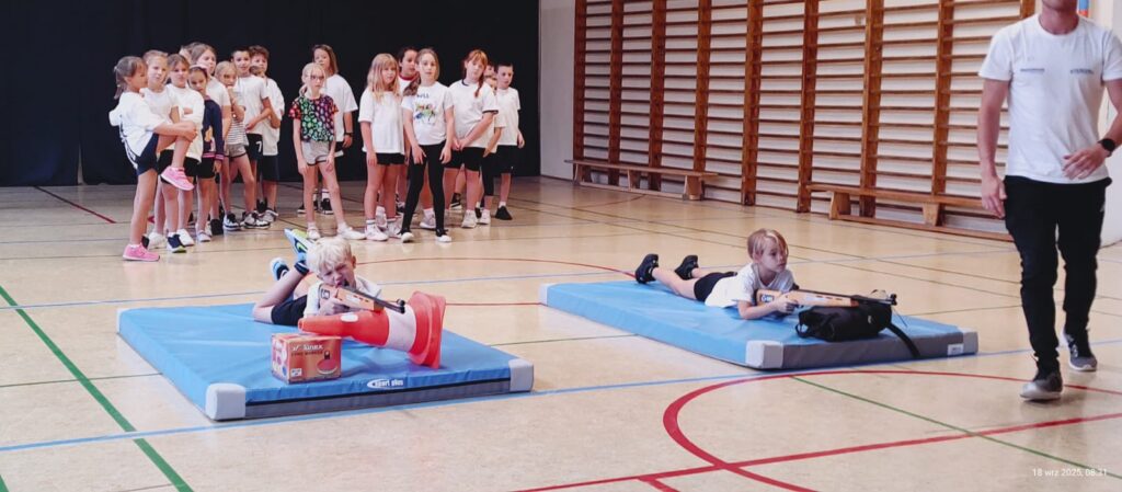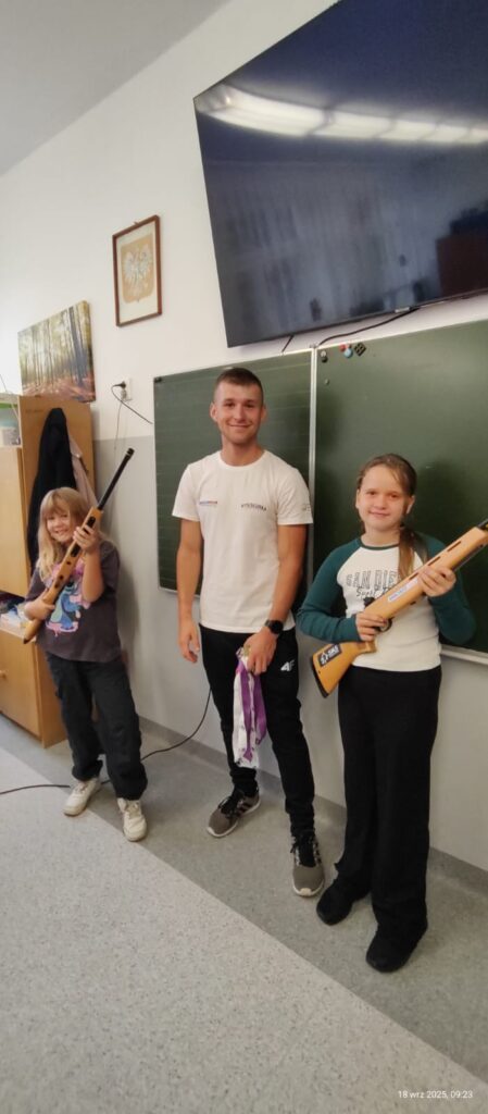 Uczniowie klasy 3a mieli niecodzienną okazję uczestniczyć w treningu prowadzonym przez naszego gościa. Podczas zajęć dzieci mogły nie tylko poznać kulisy uprawiania biathlonu, ale również spróbować swoich sił w strzelaniu z karabinów laserowych, na wzór prawdziwych zawodów biathlonowych.