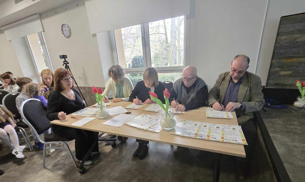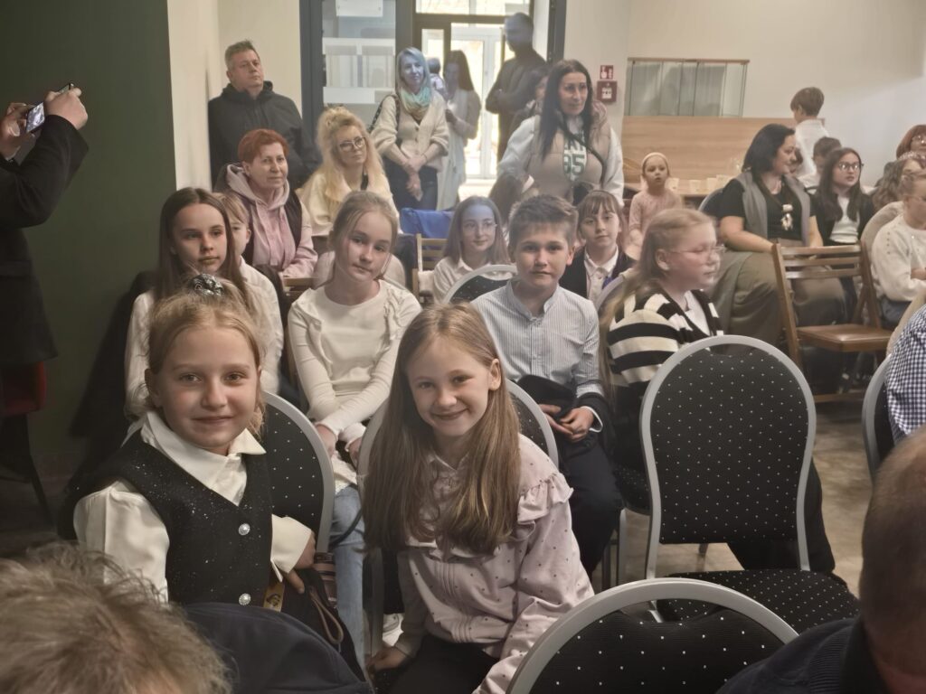 do Szczawna-Zdroju miał również wyjątkowy charakter – trasę pokonaliśmy pieszo, ciesząc się piękną pogodą i wspólnie spędzonym czasem. Uroczystego powitania uczestników dokonała sama Pani Irena Raszka, co nadało wydarzeniu szczególnie podniosły i inspirujący charakter. Organizatorzy zadbali również o miłą atmosferę – na dzieci czekał słodki poczęstunek, a podczas obrad jury uczestnicy mieli okazję obejrzeć bajkę. Całe wydarzenie przebiegało w serdecznej i życzliwej atmosferze, sprzyjającej integracji i budowaniu pozytywnych doświadczeń. Udział w takich inicjatywach to dla uczniów nie tylko możliwość sprawdzenia swoich umiejętności, ale także ważna lekcja odwagi, wyrażania emocji i obcowania z kulturą. Jako szkoła bardzo cenimy tego typu wydarzenia – rozwijają one kompetencje językowe, budują pewność siebie i uczą wrażliwości na piękno słowa.