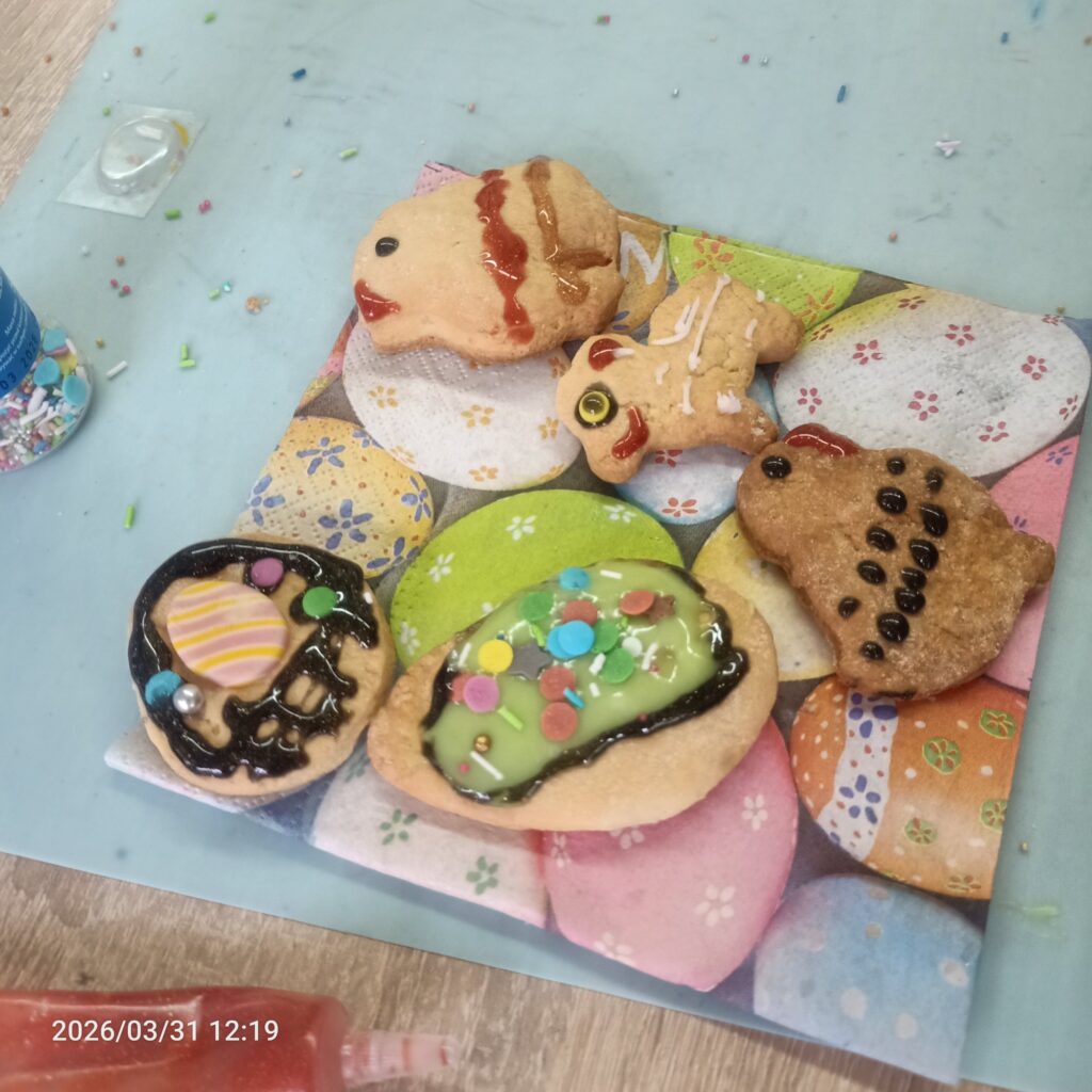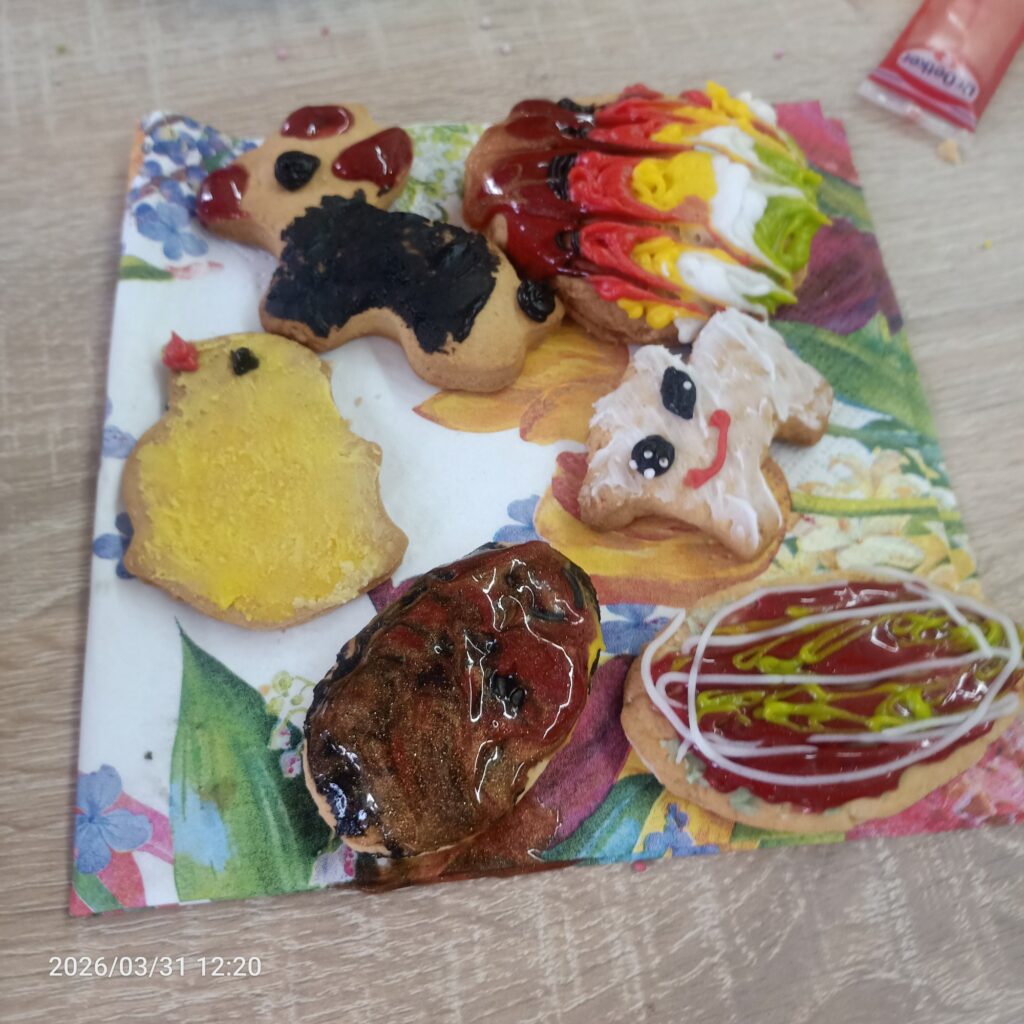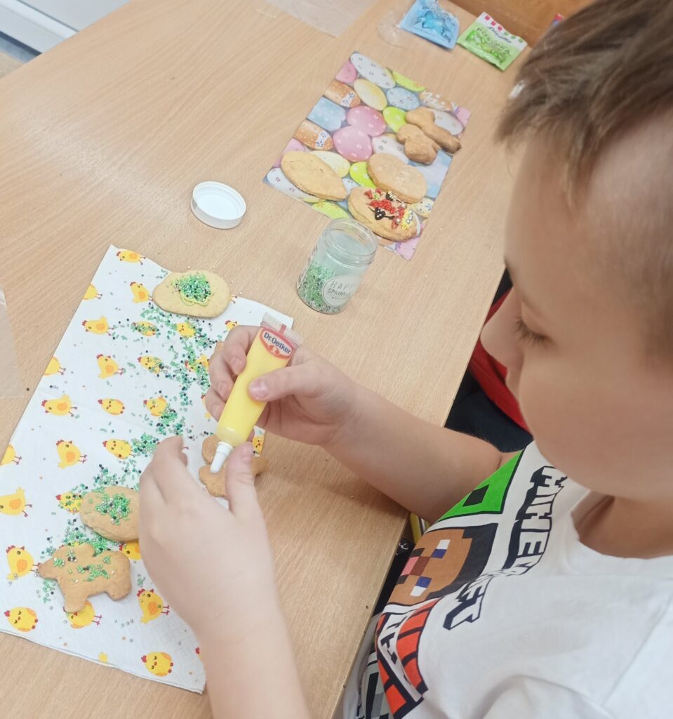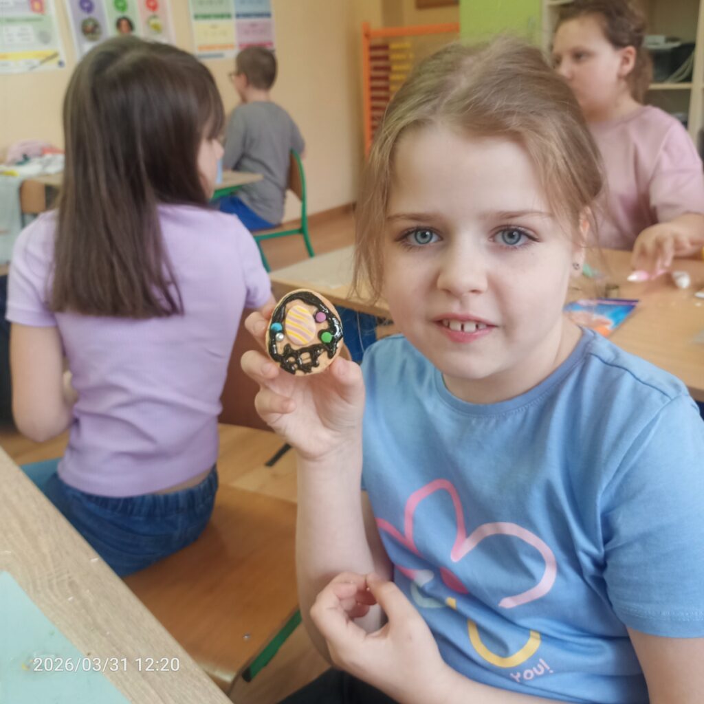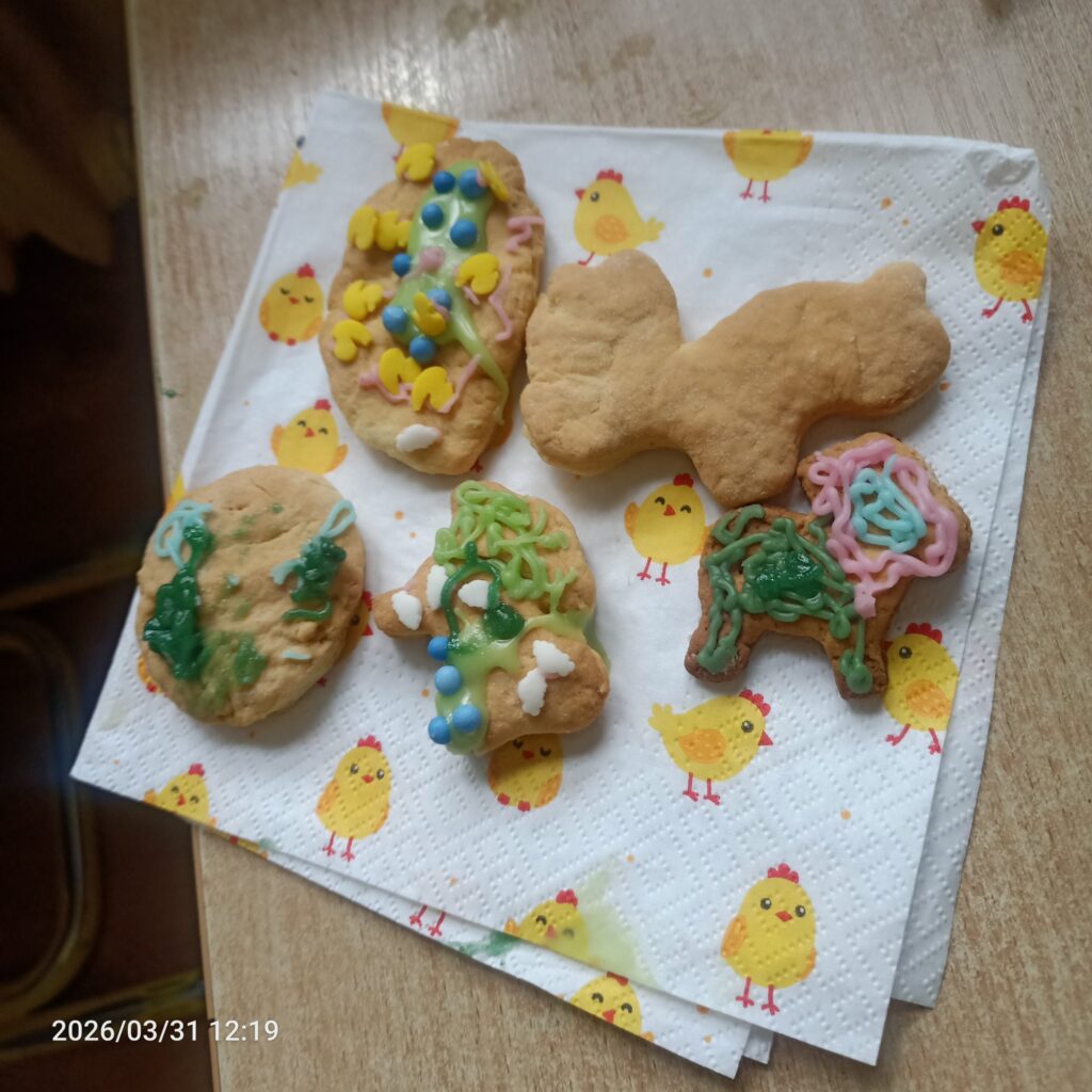 Uczniowie klasy 2c z radością przygotowują się do nadchodzących świąt. Sala lekcyjna na chwilę zamieniła się w prawdziwą cukiernię – dzieci najpierw upiekły pachnące ciasteczka w kształcie kurczaczków, króliczków i jajek, a następnie z ogromnym zaangażowaniem ozdabiały je według własnych, pomysłowych projektów.
