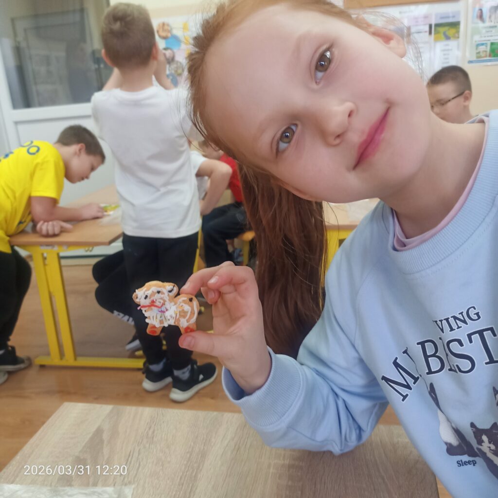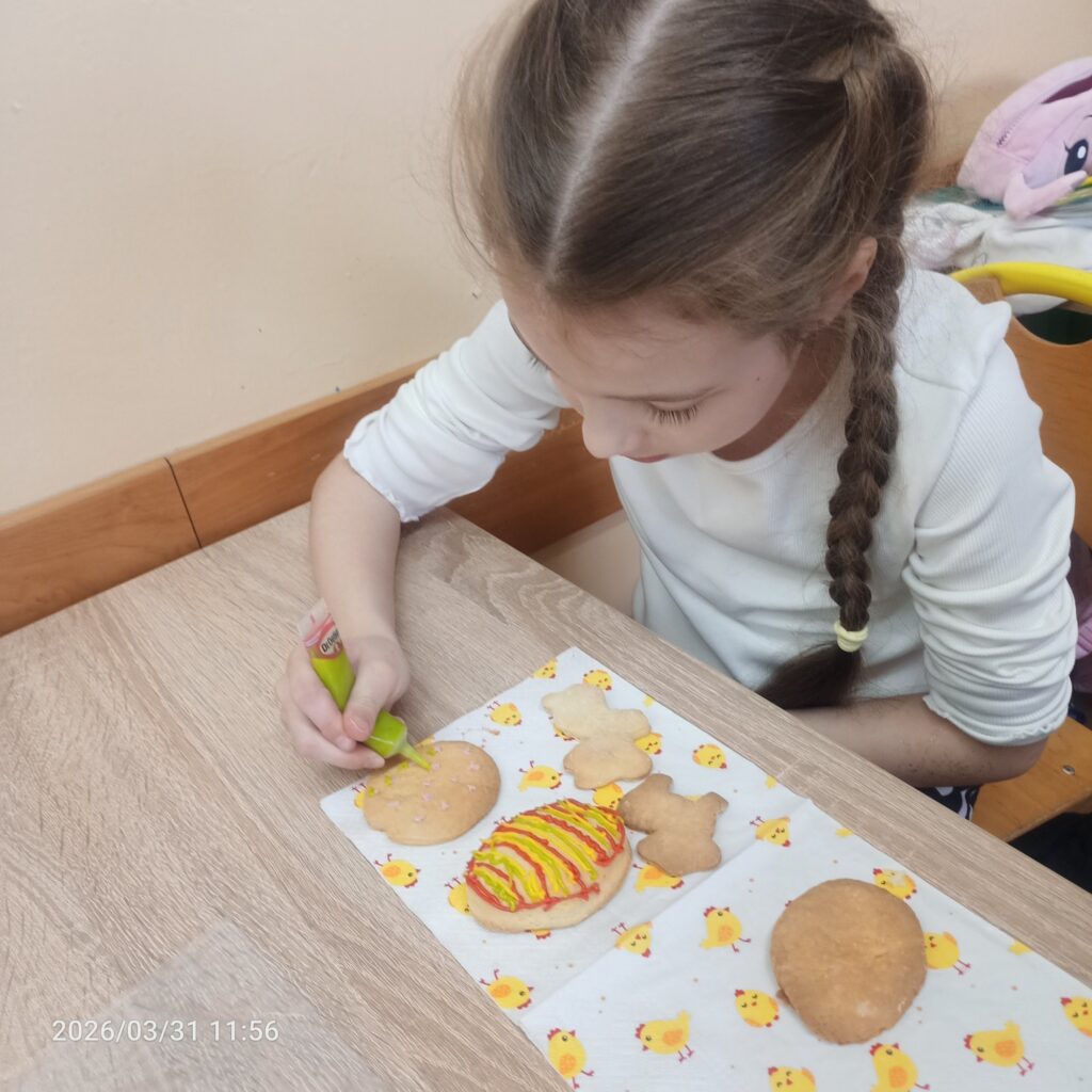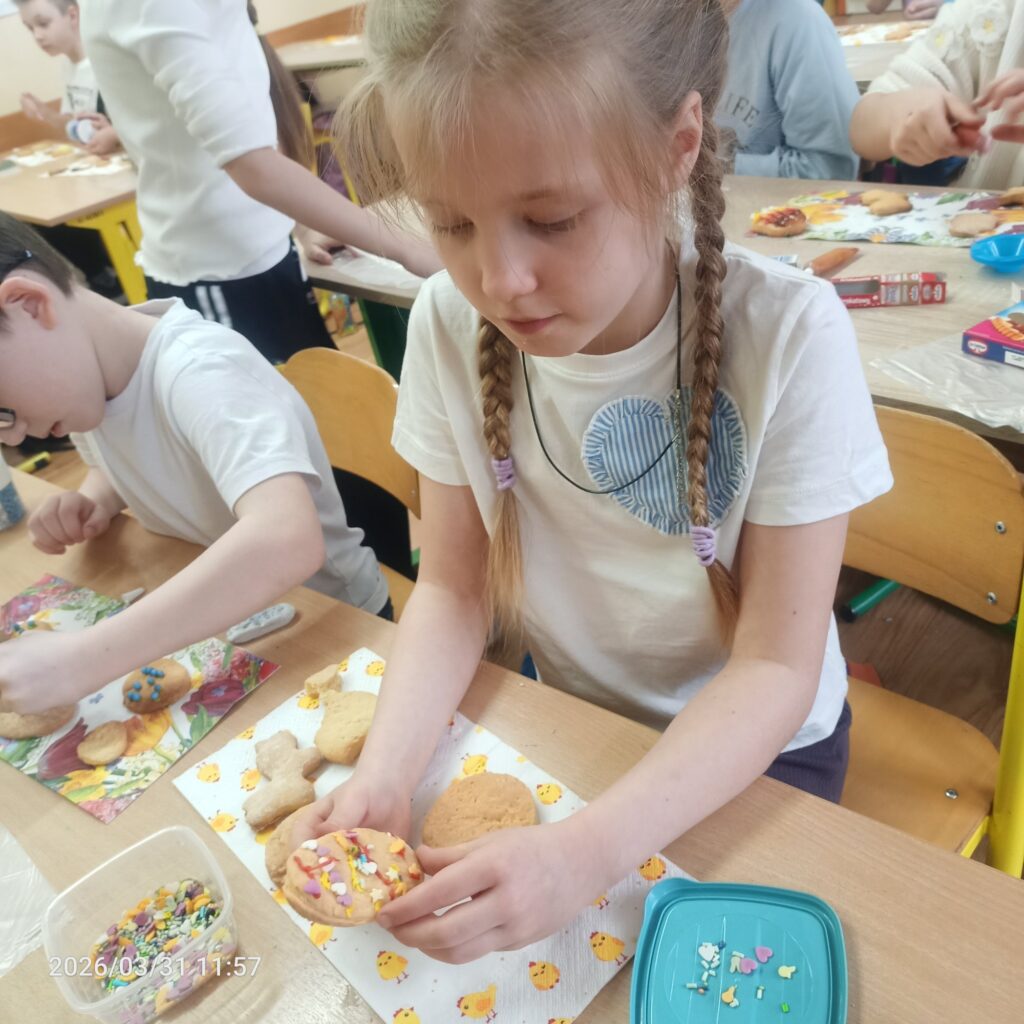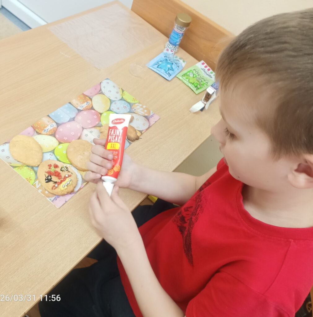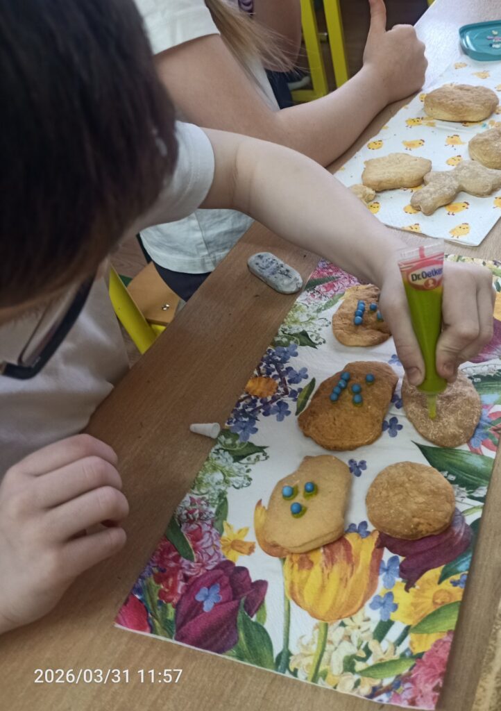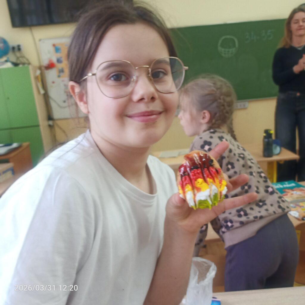 Uczniowie klasy 2c z radością przygotowują się do nadchodzących świąt. Sala lekcyjna na chwilę zamieniła się w prawdziwą cukiernię – dzieci najpierw upiekły pachnące ciasteczka w kształcie kurczaczków, króliczków i jajek, a następnie z ogromnym zaangażowaniem ozdabiały je według własnych, pomysłowych projektów.
