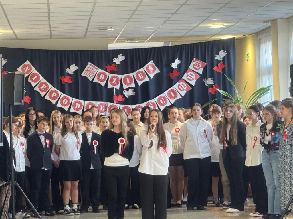 Uczniowie zaprezentowali montaż słowno-muzyczny, w którym przypomnieli najważniejsze wydarzenia prowadzące do odzyskania przez Polskę niepodległości po 123 latach zaborów. Recytowane wiersze, odgrywane scenki oraz pieśni patriotyczne wprowadziły wszystkich w podniosły i refleksyjny nastrój.