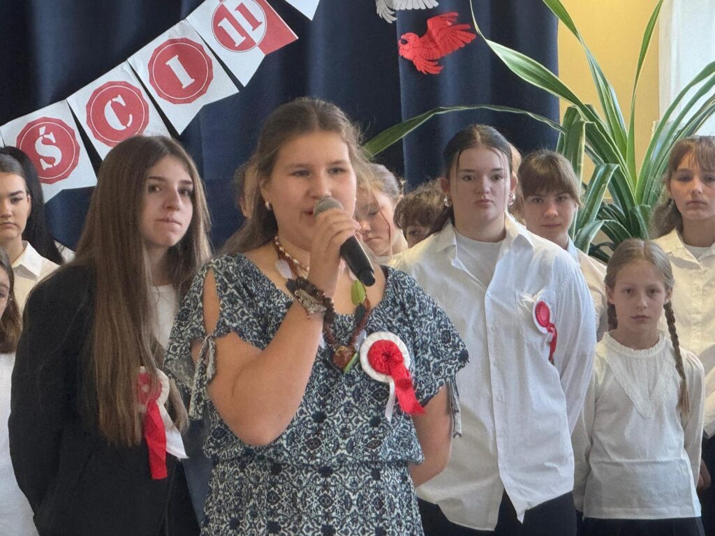 Z okazji Święta Niepodległości w naszej szkole odbyło się uroczyste przedstawienie przygotowane dla uczniów klas 4–8. Wydarzenie było ważną lekcją historii oraz okazją do wspólnego przeżywania jednego z najważniejszych świąt narodowych.