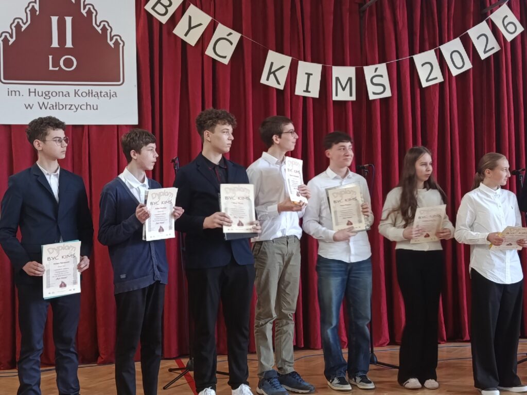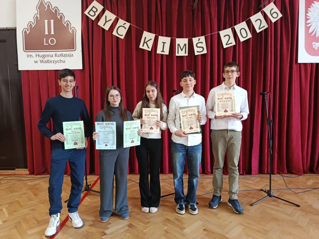 Z radością informujemy, że pięcioro uczniów klas ósmych – Julia, Natalia, Szymon, Borys i Piotr – reprezentowało naszą szkołę podczas uroczystej gali podsumowującej Powiatowy Konkurs „Być Kimś”, organizowany dla uczniów klas VIII szkół podstawowych.