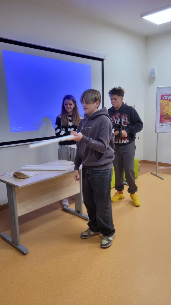 Uczniowie klasy VI a wzięli udział w XXVIII DOLNOŚLĄSKIM FESTIWALU NAUKI I MAGNETYZMU. Zajęcia zostały przeprowadzone w bibliotece na Nowym Mieście. Przygotowane doświadczenia pomogły zrozumieć, jak działa świat elektrostatyczny i magnetyczny. Uczestnicy zbudowali klatkę Faradaya, zbadali wzajemne oddziaływania ładunków elektrycznych i odkryli moc magnesów. Poznali także pochodzenie słowa elektron . Okazało się, że w słowniku starożytnych Greków oznacza ono bursztyn. W starożytnej Grecji zauważono, że pocierany bursztyn (gr. elektron) przyciąga drobne przedmioty po wytworzeniu ładunku statycznego. Pewnie niektórzy z Was również odkryli to zjawisko – pocierany bursztyn przyciąga kawałki papieru. A więc pamiętajmy, że świat nauki nas otacza, wystarczy go obserwować!